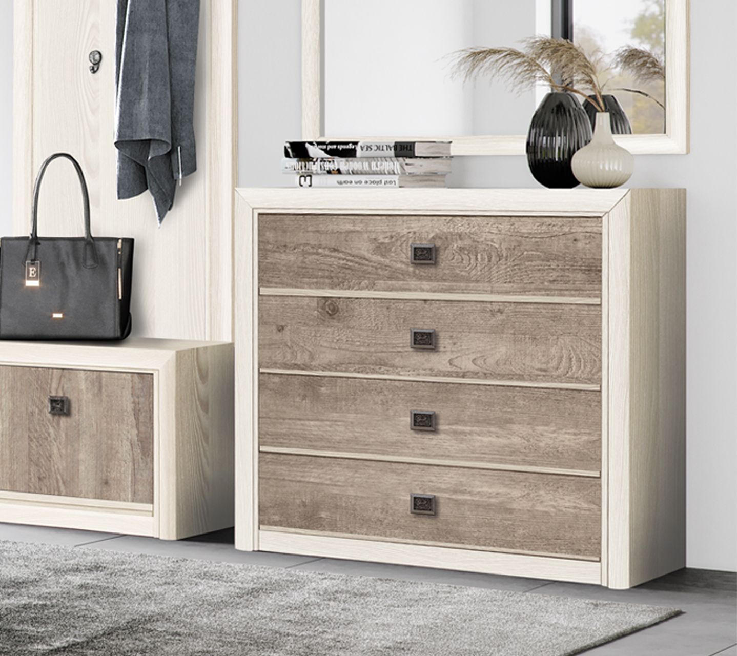 Комод Koen уверенно демонстрирует естественное начало и покоряет необычным сочетанием модных тенденций и традиционного дизайна. Гармония и подчеркнутая небрежность, игра контрастов и крайний минимализм – все эти качества воплотились в гармоничном балансе. Широкая и вместительная модель укомплектована четырьмя выдвижными ящиками на роликовых направляющих. По периметру проходит декоративная вставка из МДФ.