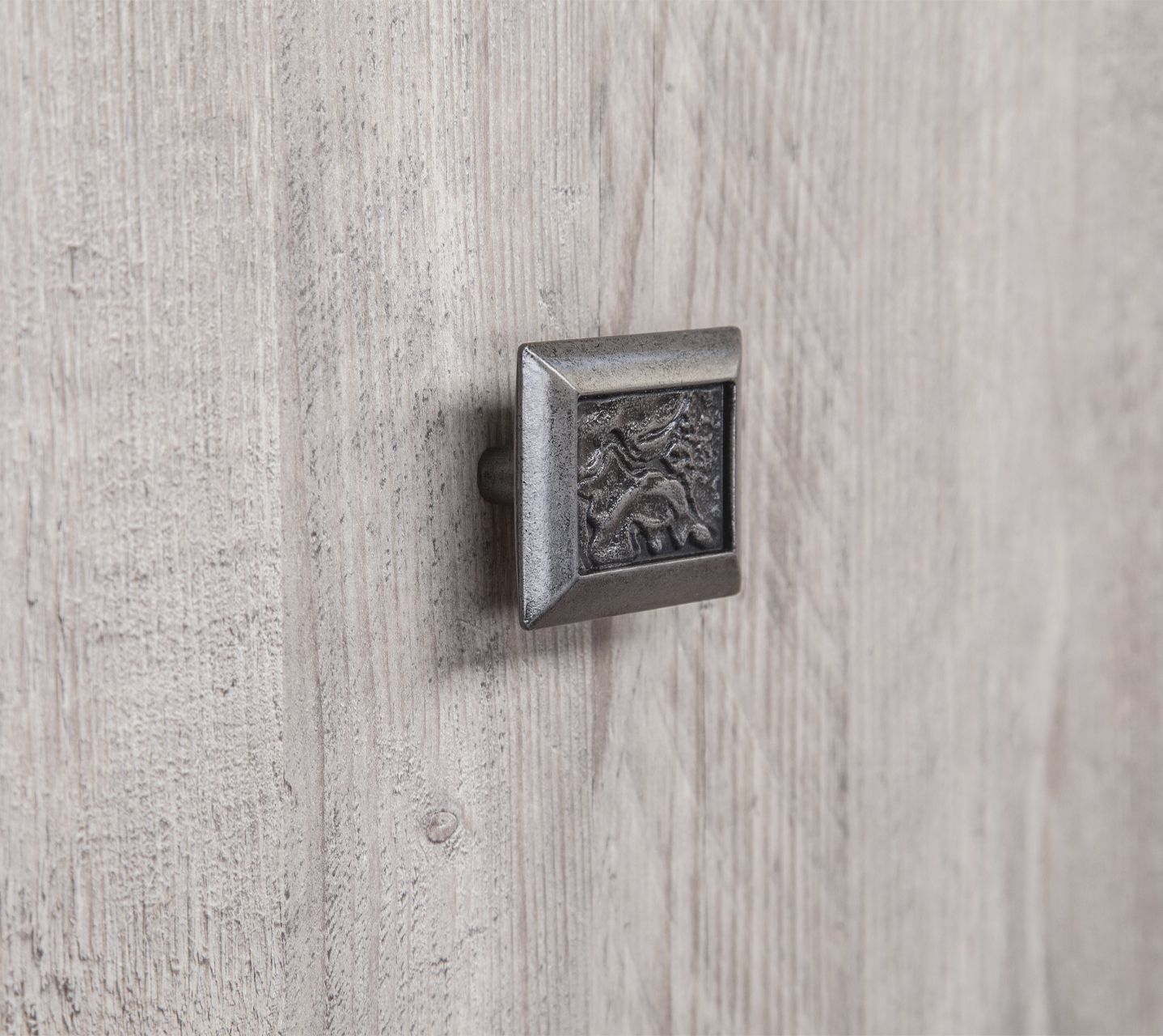Особенностью комода «Коэн» является оригинальная комбинация оттенков. Здесь белый каркас под цвет снежного ясеня гармонично перекликается с коричневыми ящиками из натуральной сосны, а светлые фасады дополняют гравированные ручки коричневого цвета.