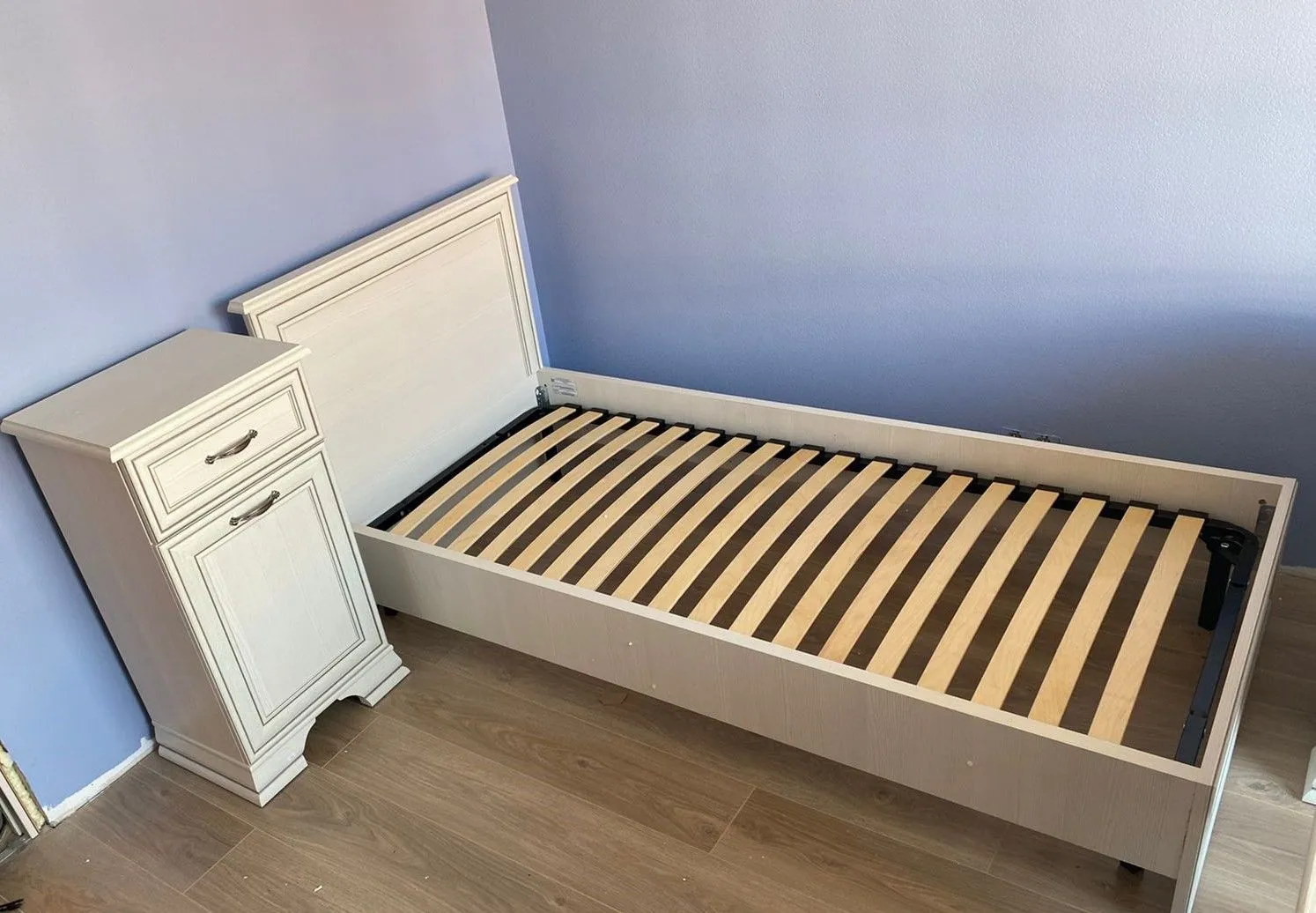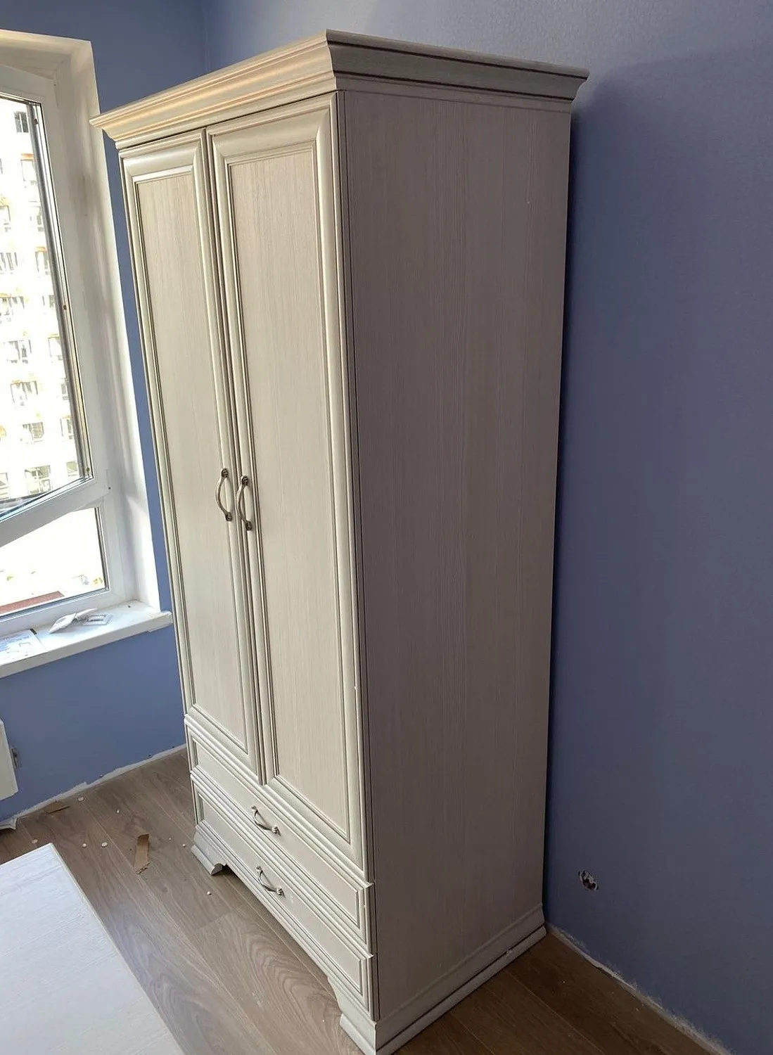 Порадовало обслуживание. Консультант говорил вежливо и по делу. Собирал мебель сам. Фурнитура нормальная. Ящики с доводчиками. Комплект подошел по размеру к комнате.