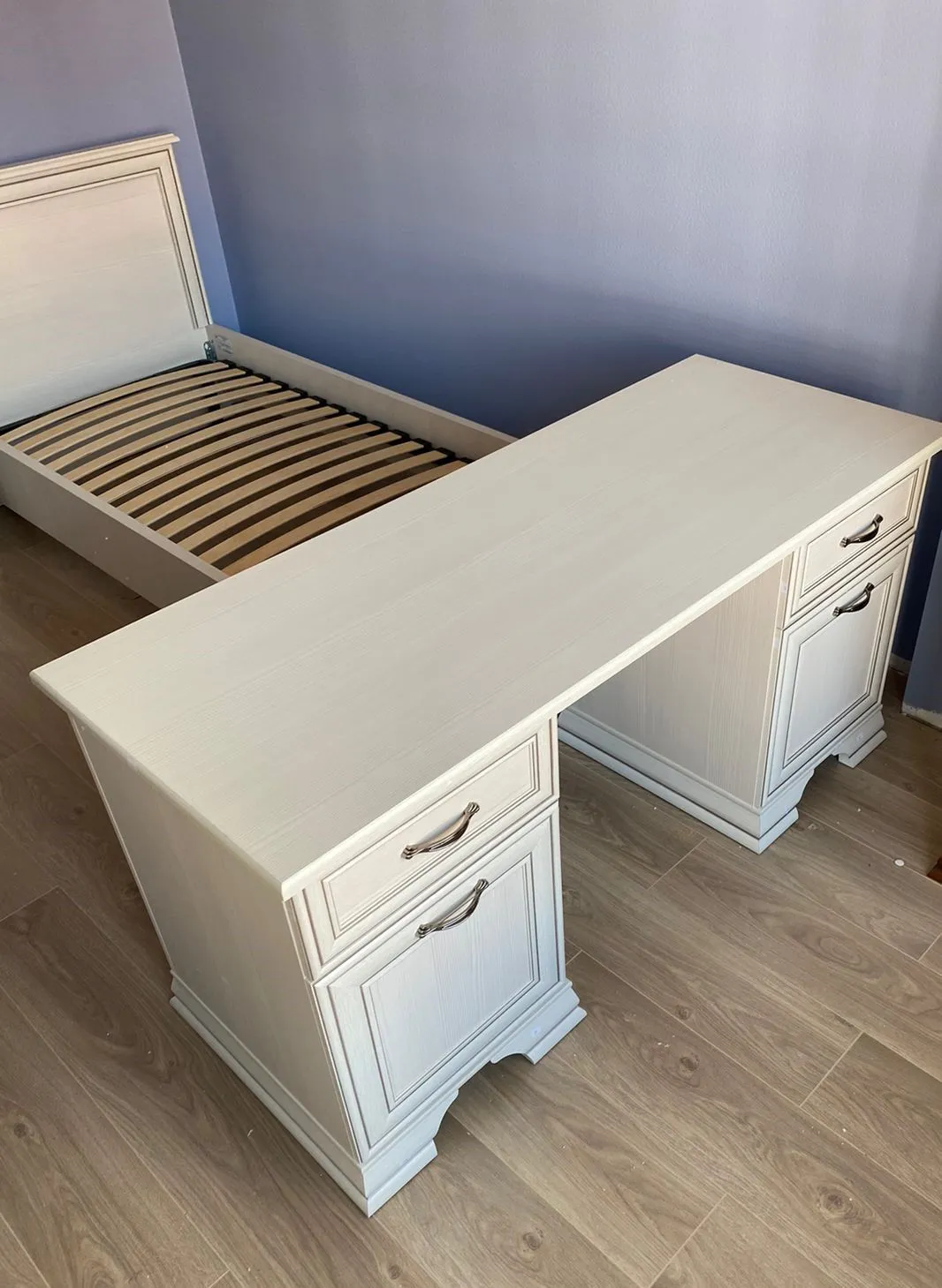 Покупали целый комплект мебели. Намного легче было определиться, что именно нужно установить в комнате. Все смотрится гармонично. Мебель прочная, безопасная. Продумано, чтобы ничего не могло бы навредить ребенку. У нас дочка-подросток. (Понаприглашала друзей чтоб оценили). Да и доставили быстрее, чем я предполагала. Сервис просто на высшем уровне!
