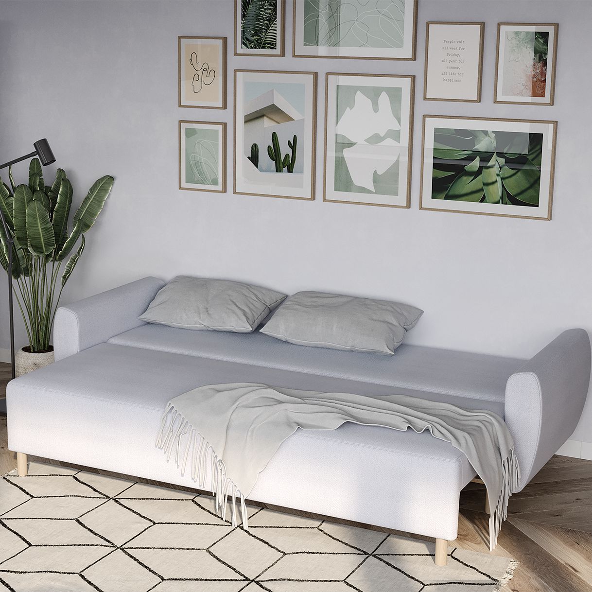 ГУД ЛАКК-новое имя бренда Шведский стандарт! Прямые диваны с подлокотниками раскладного типа оптимальны для малогабаритных квартир. Наша мебель выполнена в скандинавском стиле, но сможет вписаться и в разнообразные по стилю интерьеры: современный и классический стиль, лофт, минимализм. МАТЕРИАЛ ОБИВКИ РОГОЖКА • Главное преимущество ткань рогожка – это ее долговечность! Двойное шахматное переплетение делает нити прочными и устойчивыми к истиранию. • Благодаря шахматной структуре плетения нитей свободно пропускает воздух и предотвращает появление грибка и плесени. • Несмотря на свой грубый вид, рогожка мягкая и приятная на ощупь. НАПОЛНИТЕЛЬ ППУ • Наполнитель из пенополиуретана – современный эластичный материал, способный сохранять форму, поэтому нагрузка от веса человека распределяется равномерно. • Пенополиуретан практичен и способен прослужить в течение многих лет, кроме того, такой материал безопасен и экологичен. • ППУ пропускает воздух, поэтому гигиеничен – его легко проветрить и просушить. МАТЕРИАЛ КАРКАСА МАССИВ • Каркас из деревянного массива обеспечивает конструкции устойчивость и долговечность. • Каркасы из массива отличаются экологичностью. МЕХАНИЗМ ТИК-ТАК • Такой механизм трансформации ещё называют пантограф или шагающая еврокнижка. • Это устройство почти не повреждает покрытие пола. • Простота в использовании. Диван сможет разложить даже ребенок. Качественная, недорогая, красивая, функциональная мебель в любой точке России, Беларуси и других стран СНГ. ГУД ЛАКК-для вашего дома! Поставляется в разобранном виде, со всеми необходимыми комплектующими, инструкцией и схемой по сборке. Габариты изделия: Высота – 87 см; Ширина – 90/141 см; Длина – 232 см. Спальное место: 1410х2010 мм. Глубина сидения (с/без подушек): 50/76 см. Максимальная нагрузка на одно спальное место: 100 кг. Вес без упаковки: 72 кг. С ящиком для белья. Тип опор – натуральные ножки из бука/березы высотой 15 см. Каркас мебели: заготовки из массива сосны, фанера, HDF, ЛДСП, литой картон, металлические кронштейны. Матрасный блок: пружинный блок боннель Ø 3,8мм, ППУ марок: Т30150, T20120, T25150. Размер приспинных подушек: 67х45х21 см. Габариты разобранного товара с упаковкой: длина, ширина, высота, мм: 2000х785х325, 2000х660х130. Мебель рекомендуется эксплуатировать в помещении с температурой воздуха не ниже +10°С с относительной влажностью 45-70%. Нельзя располагать мебель вблизи отопительных приборов, вплотную к сырым стенам, ставить под прямые солнечные лучи, допускать соприкосновения горячих предметов с мебелью или продолжительного воздействия излучений, вызывающих нагревание поверхности мебели. Температура нагрева элементов мебели не должна превышать +40 °С. Срок службы: 5 лет. Гарантийный срок: 18 месяцев при условии эксплуатации в качестве домашней мебели.