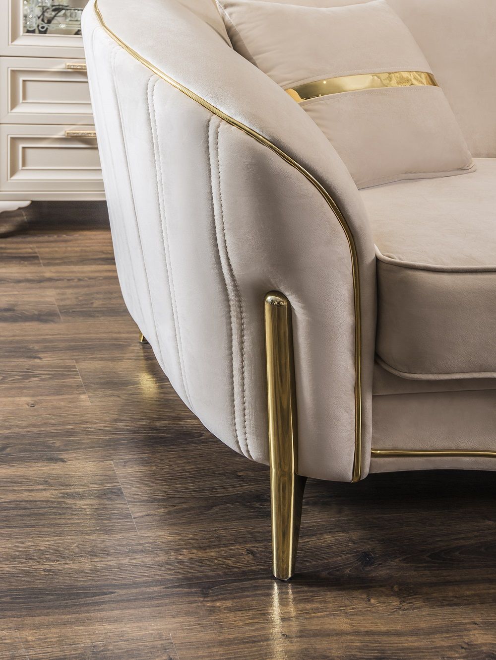 Утонченные элементы, роскошная обивка, витиеватые накладки доставят эстетическое наслаждение своим владельцам. Бежевый цвет «мокко» мебели позволяет визуально увеличить пространство спальни, подчеркнуть важные детали, добавив в пространство легкости и света.