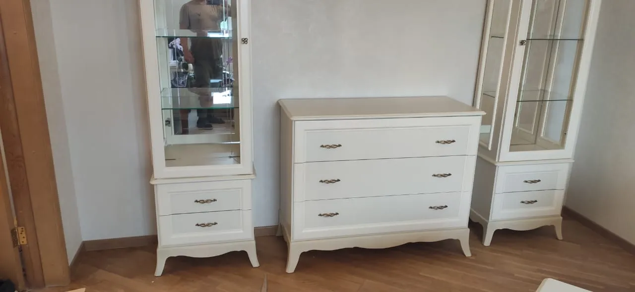 Комплект гостиной с маленьким и большим шкафами хорошо подходят для моей большой семьи. Красивый белый цвет, витрины со стеклянными дверцами, за которыми можно разместить сувениры, посуду, фото детей и внуков, и прочие важные мелочи. Все элементы отлично подогнаны по размеру, хватает всех крепежей. Приобретением довольна. Муж сам собрал мебель за 4 часа, потому что все предельно четко и понятно. Спасибо магазину за бережную доставку мебели, все пришло в идеальном виде.