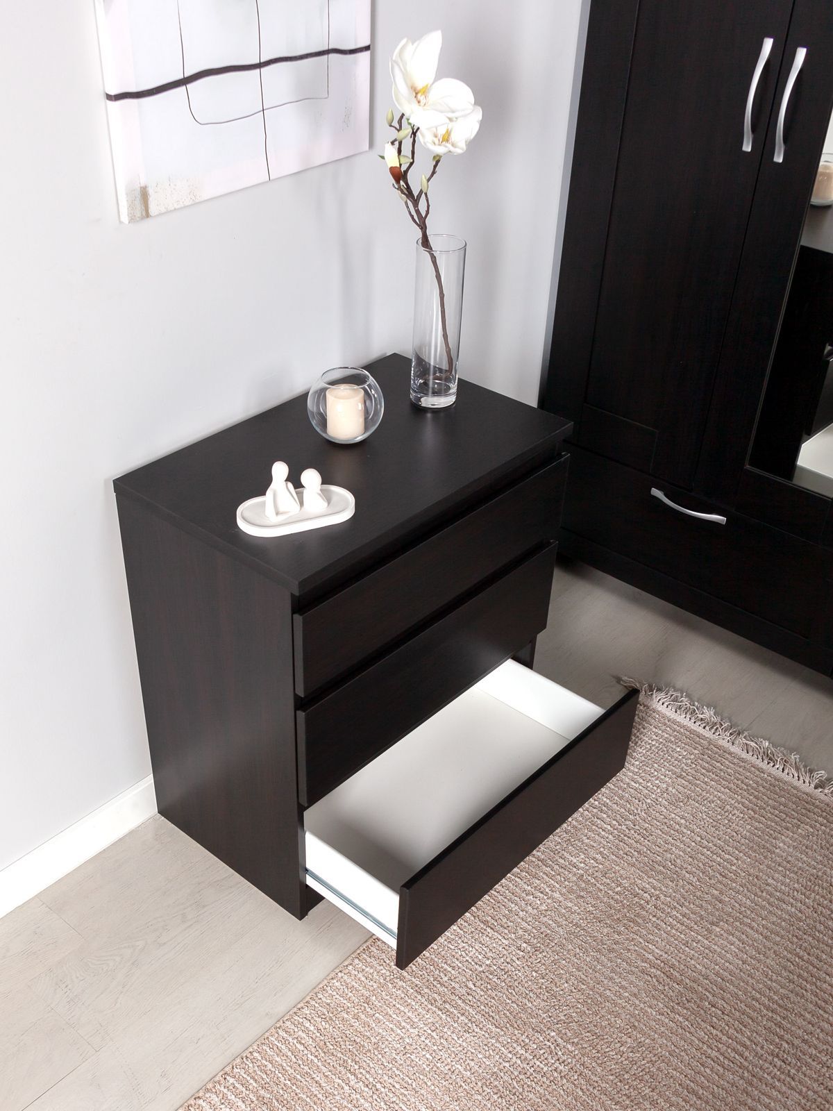 Комод Кастор, 3 ящика, 65х40х71 см, черный, дуб венге