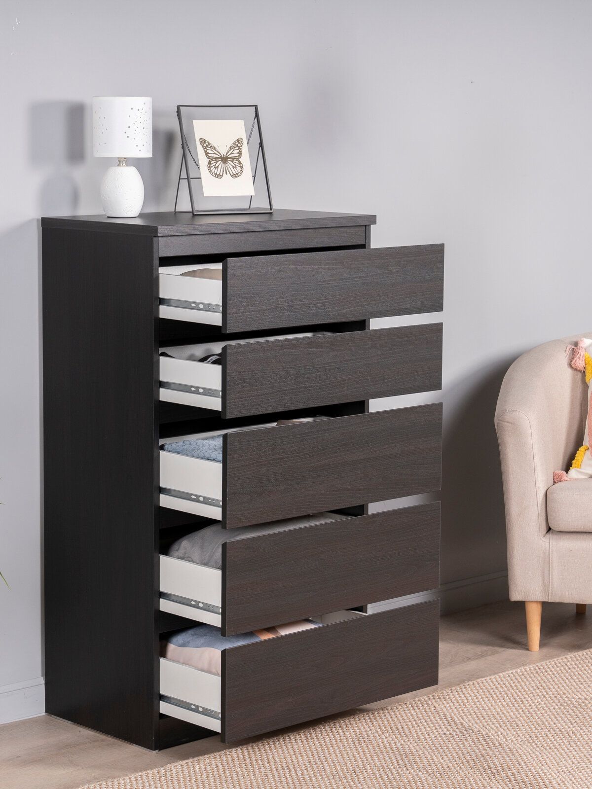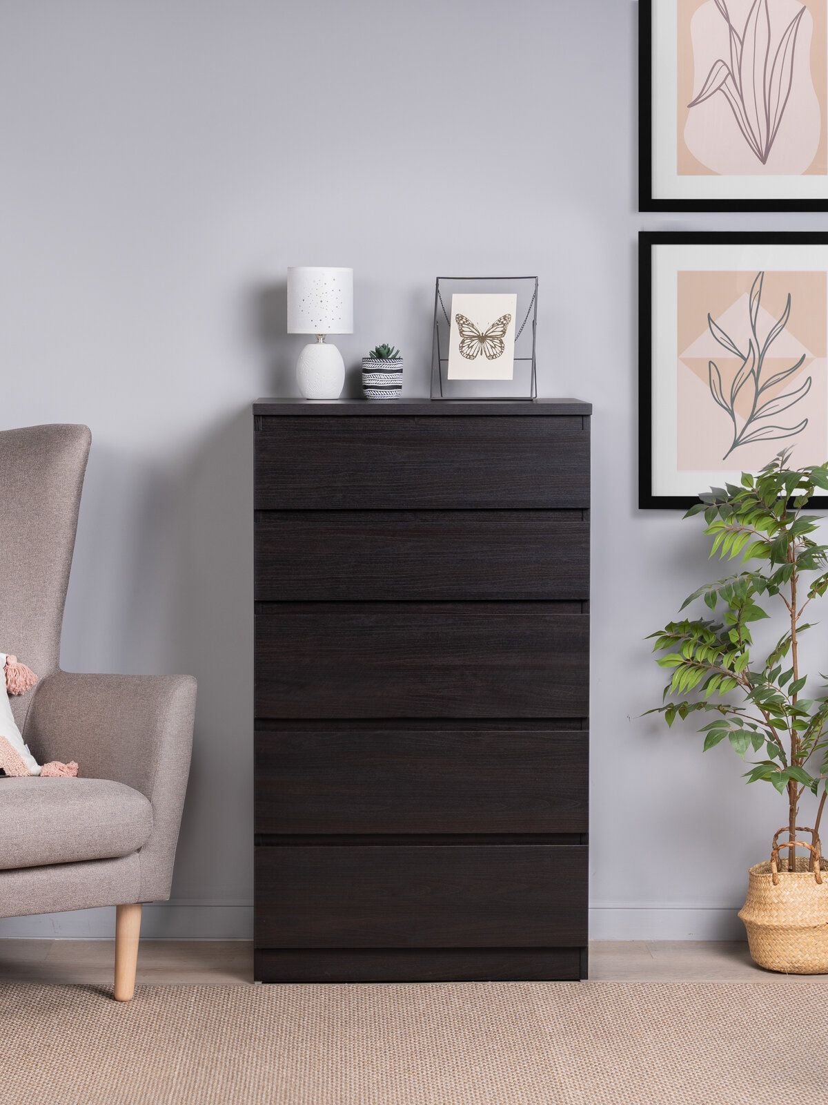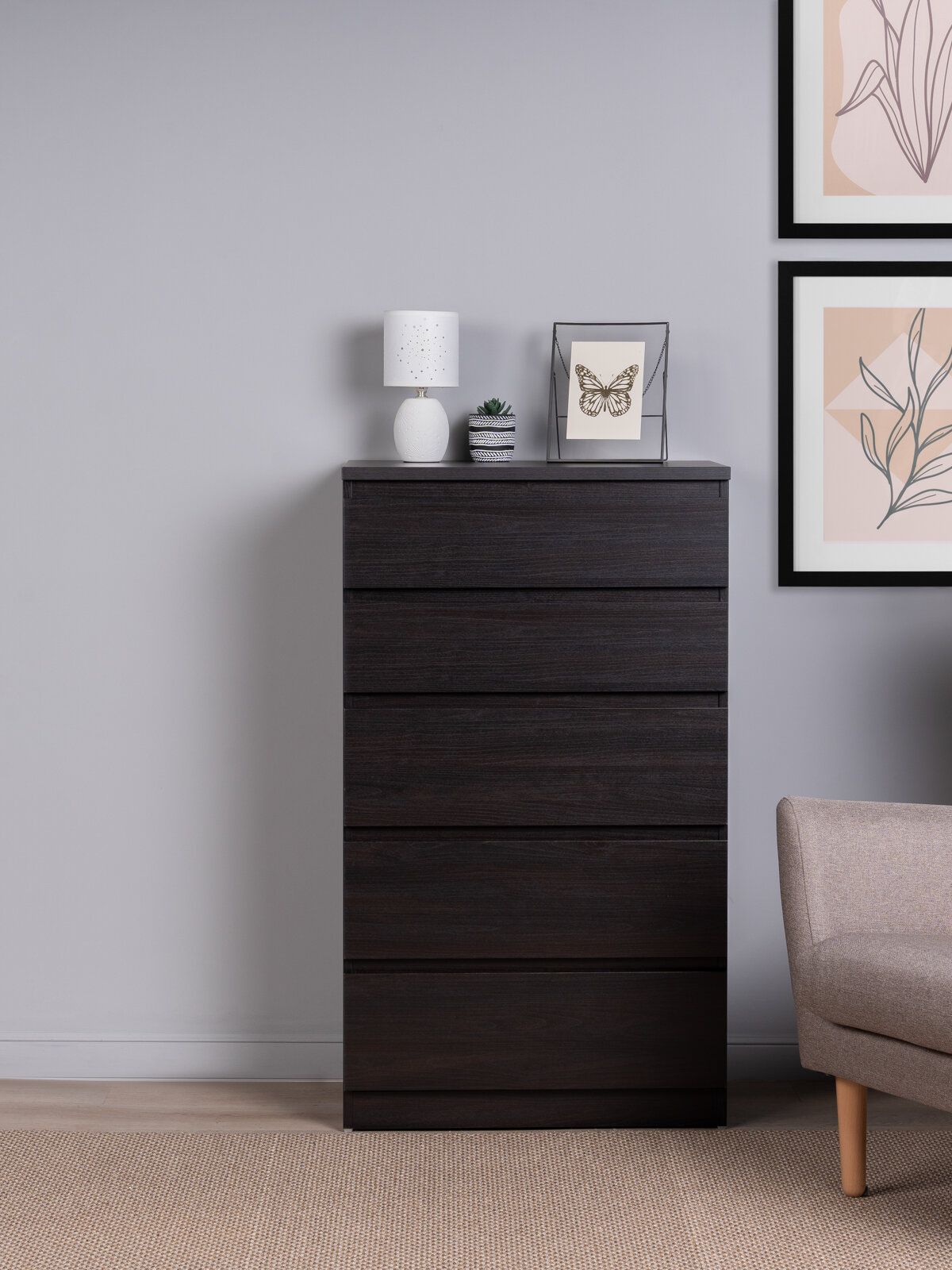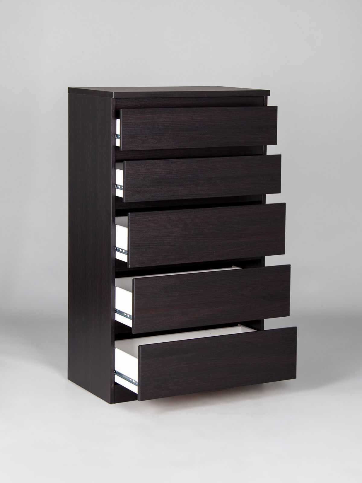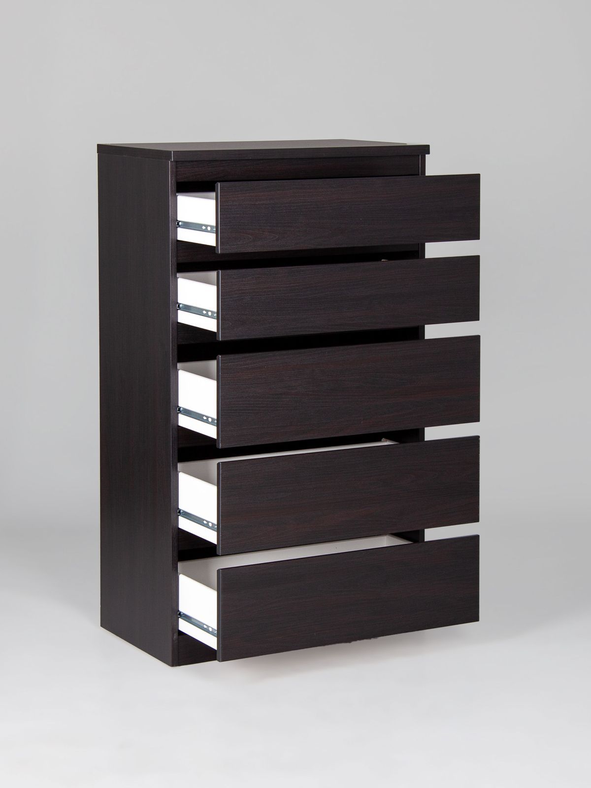 Комод Кастор, 5 ящиков, 65х40х112 см, черно-коричневый, дуб венге