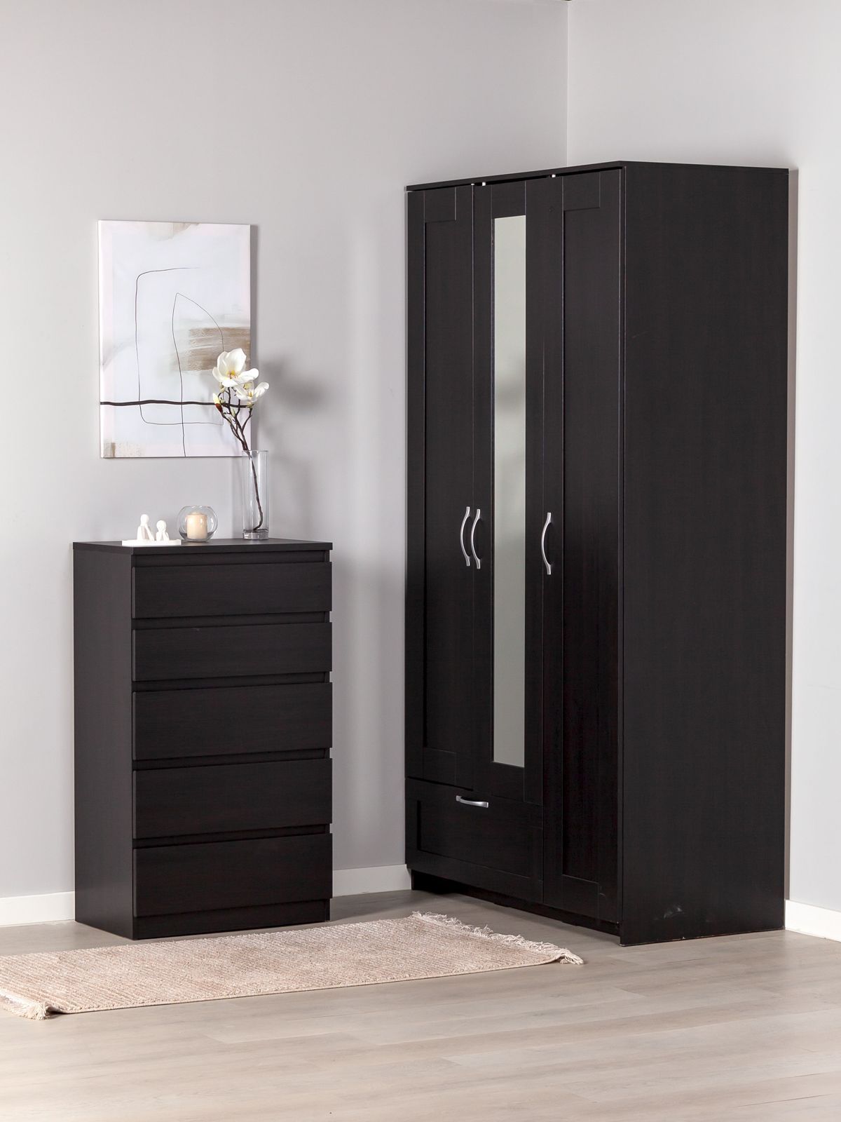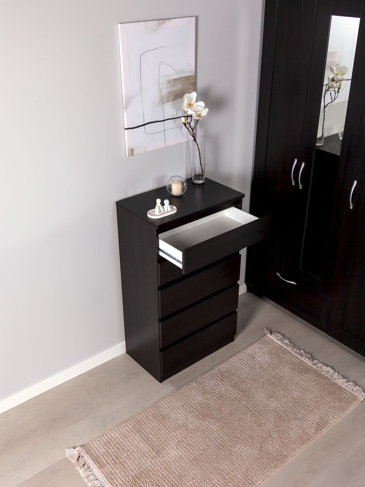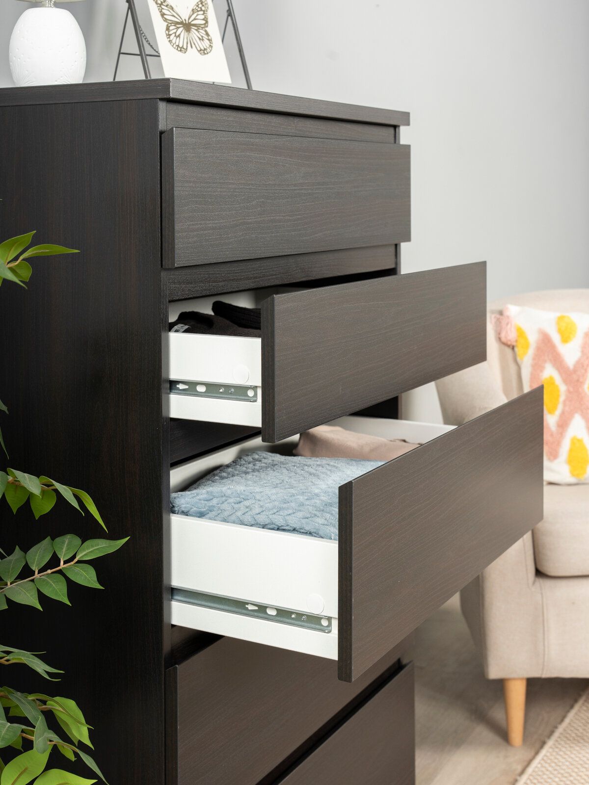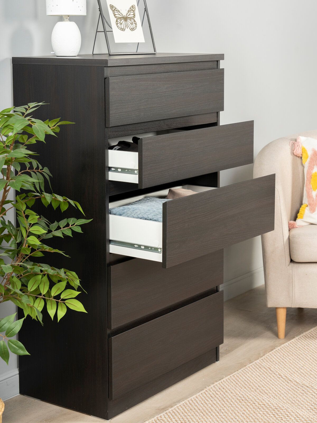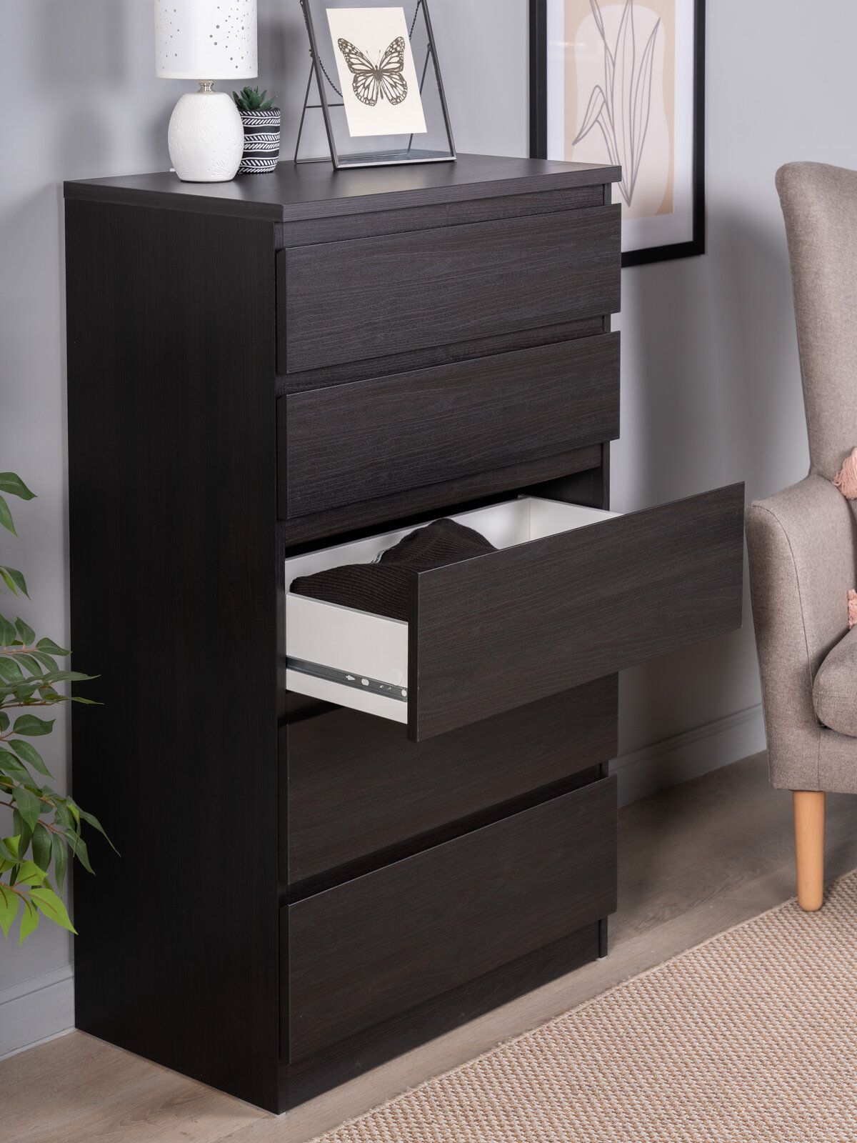 Комод Кастор, 5 ящиков, 65х40х112 см, черно-коричневый, дуб венге