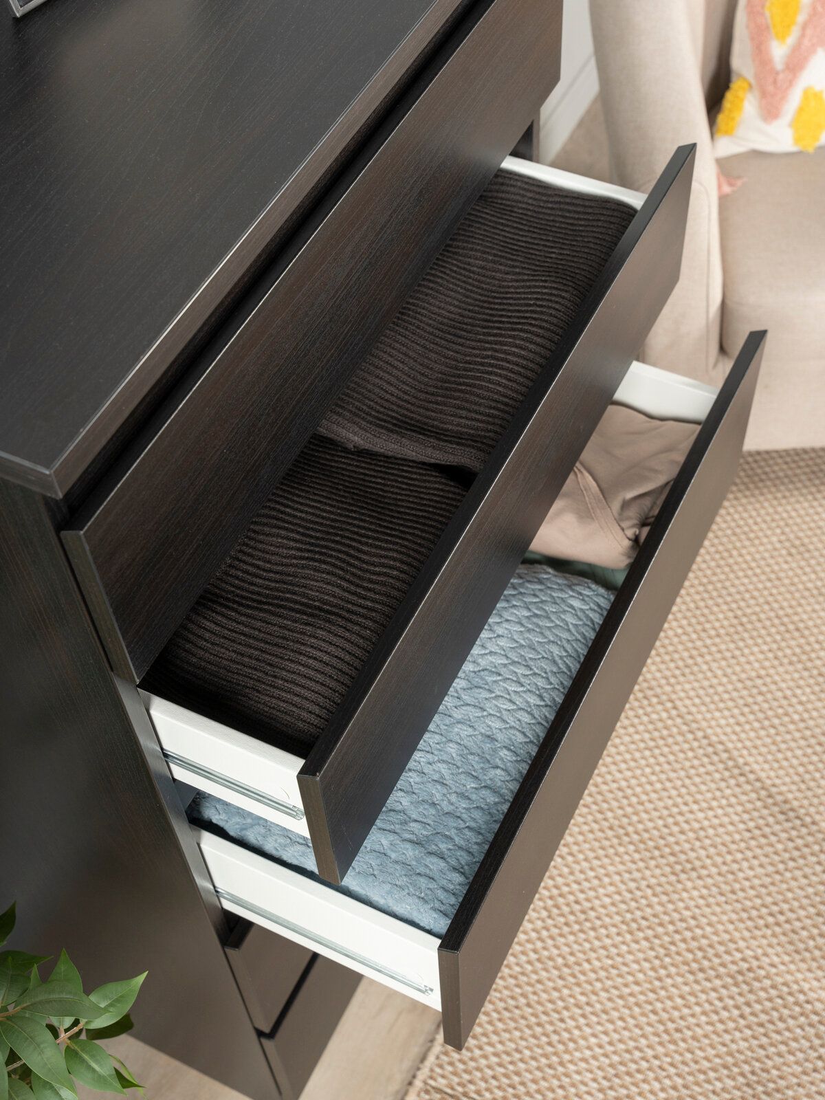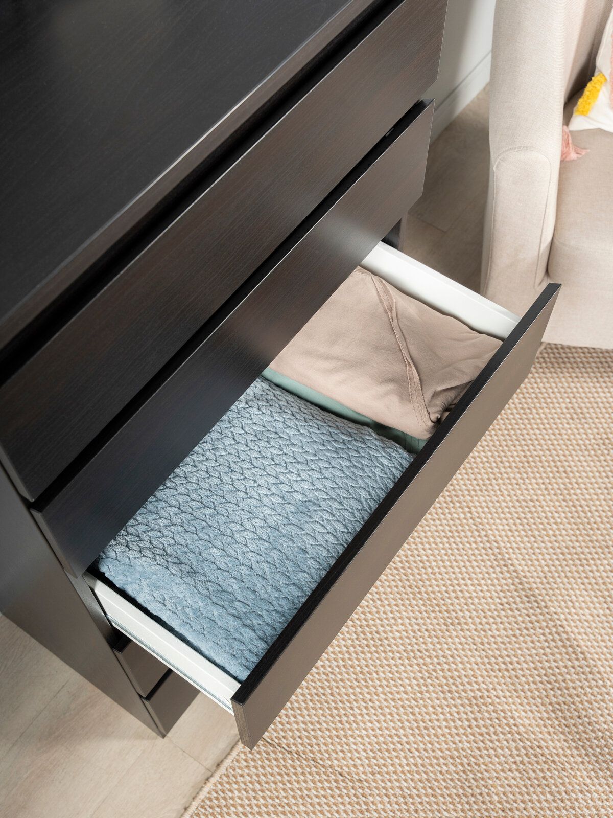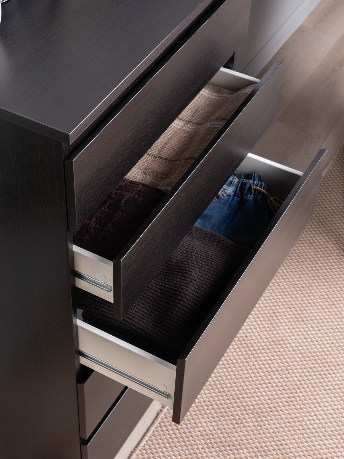 Почему выбирают комод КАСТОР 5 ящиков? Комод КАСТОР 5 ящиков недорогой и универсальный комод небольшого размера, у которого два вида ящиков – верхний, менее глубокий, служит для хранения необходимых мелочей, чтобы были всегда под рукой, и другие, более вместительные – для подушек, одеял, белья или одежды, ведь благодаря максимальной нагрузке 8 кг они подходят для любых целей. Вертикальное расположение ящиков позволяет экономить пространство в комнате, а на столешнице комода можно поставить все, от рамок и ваз до аквариума – максимальная нагрузка на нее целых 15 кг! Серия комодов и тумб КАСТОР самая компактная из мебели ГУД ЛАКК, и позволяет разместить их в действительно небольших пространствах. Идеальное соотношение цены и качества!