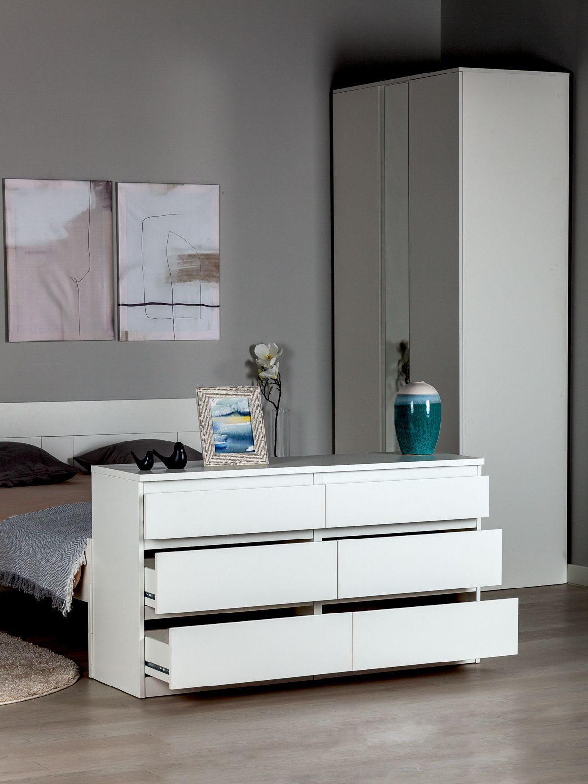 Высокий, красивый, идеально встал в гардеробной, доставка. Сам комод понравился, похож на икею. Доводчиков нет, но закрывается плавно, не хлопает. Инструкция в комплекте, самой собрать не получилось, пришлось просить помощь. Доставили вовремя и всё приехало в целости, хорошая упаковка, до сборки каждая деталь была разделена картонкой и дополнительно упаковали плёнкой. Спасибо продавцу и курьеру за аккуратность в сборке и доставке.