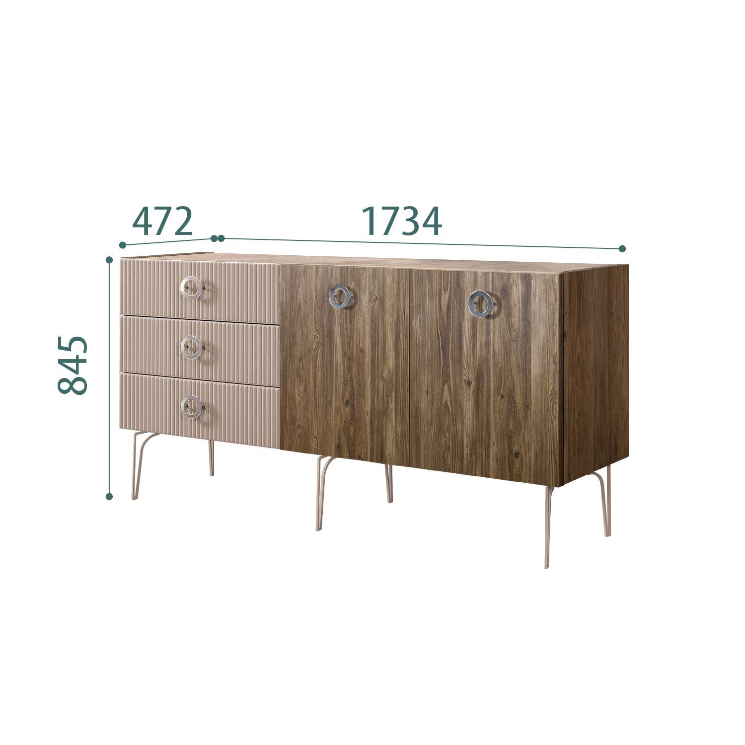 Комод 1.6м Bogemia Woodline Wood Fi (Мокка) (Novabuk/Хром) БМКМ-4