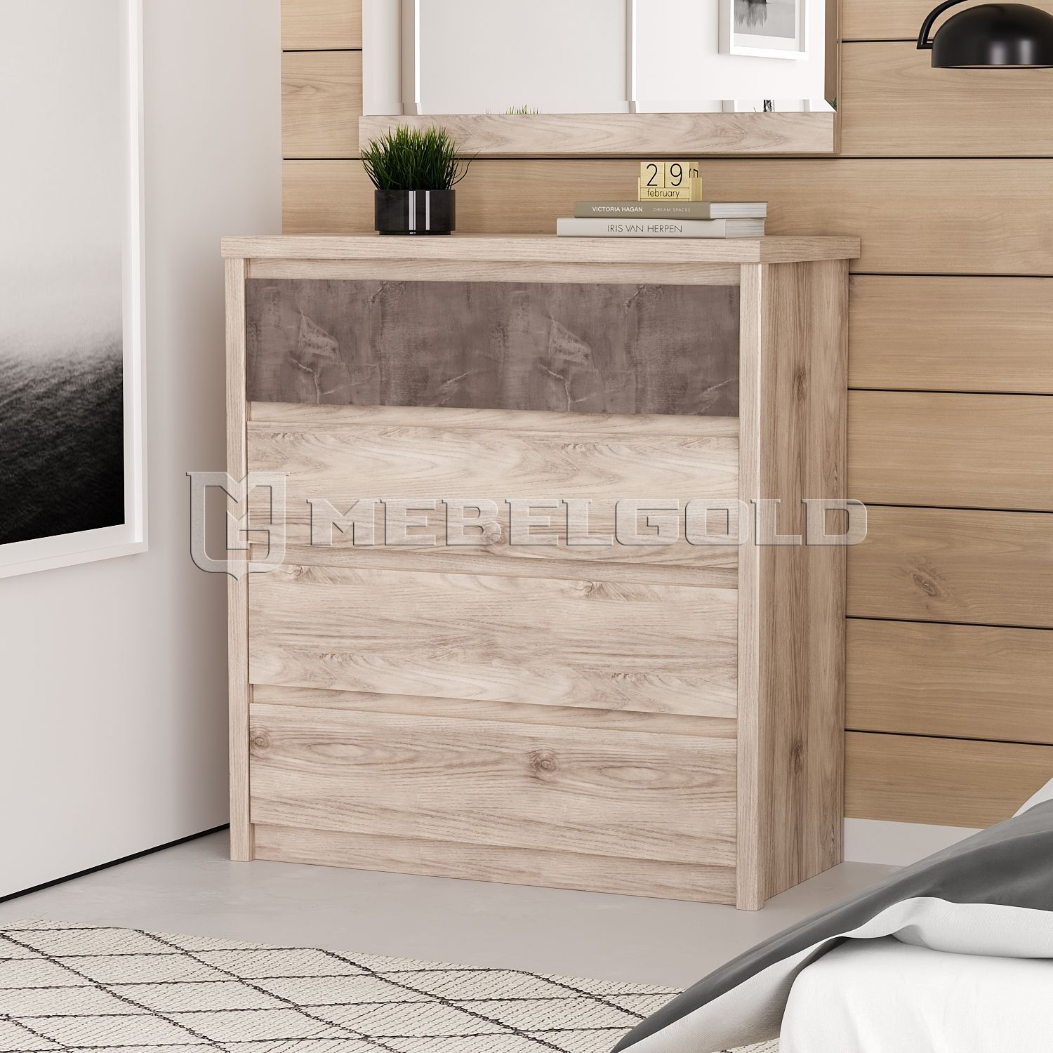 Комод JAZZ 4S создан в заводских условиях из ЛДСП, его торцы отделаны кромочным материалом, а в ящиках установлены шариковые направляющие европейского производства. Такая фурнитура обеспечивает основным элементам плавный ход без рывков и заклинивания. Комод «Джаз» поможет хранить мелкие вещи, аксессуары для новорожденного и прочие бытовые мелочи.