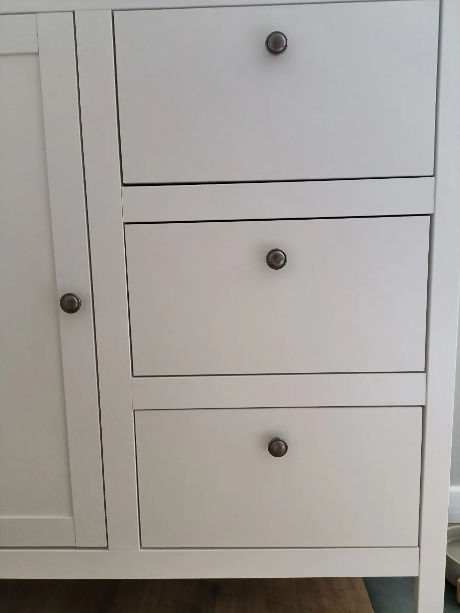 Хороший, не большой комод. Покупали серию в гостиную. Собрали быстро, по инструкции. Ручки полностью заменили