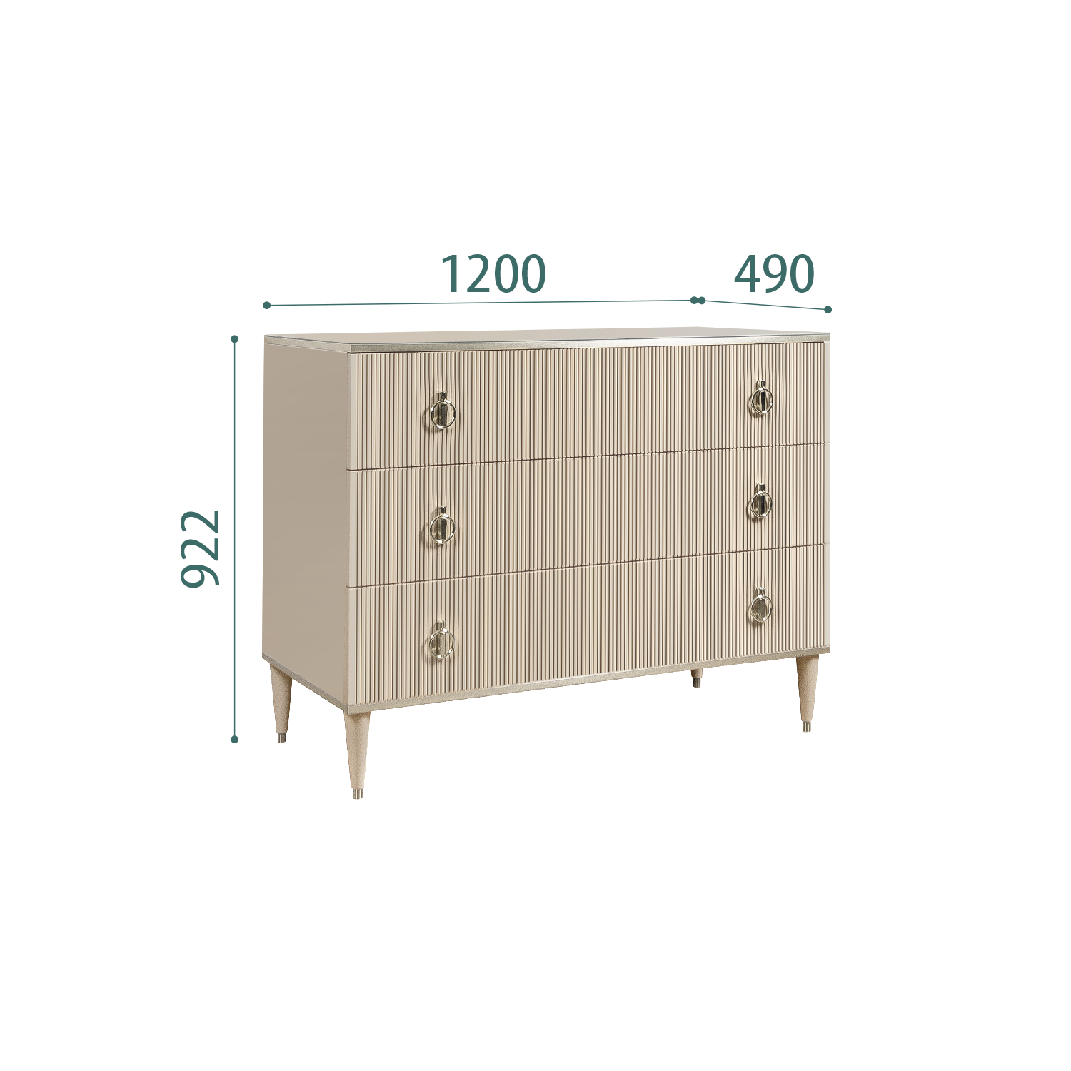 Комод Rimini Solo с декоративной планкой отделан итальянским лакированным МДФ и ударостойким окрашенным стеклом Lakobel. Он произведен на российской мебельной фабрике «Ярцево» с использованием европейской фурнитуры Hettich и Hafele. Модель имеет размеры, приближенные к стандарту. Ее ширина составляет 120 см, глубина 49 и высота 920 см.