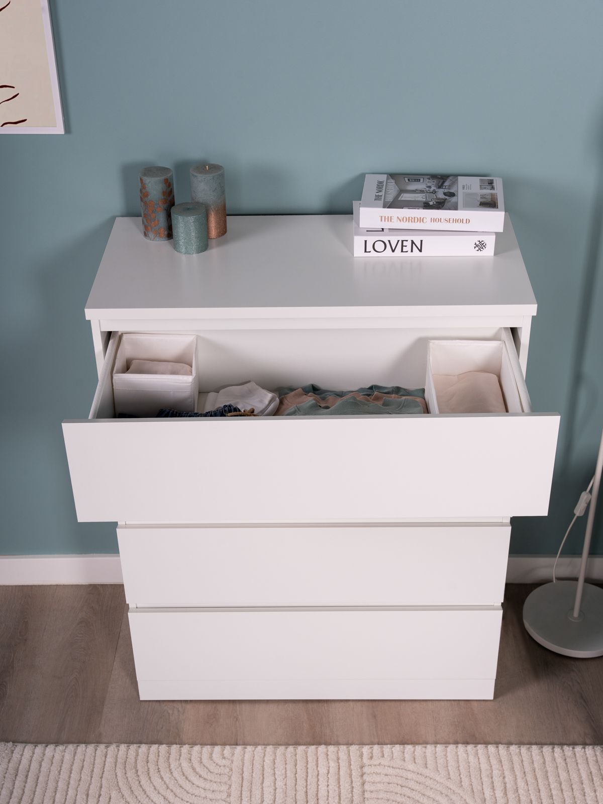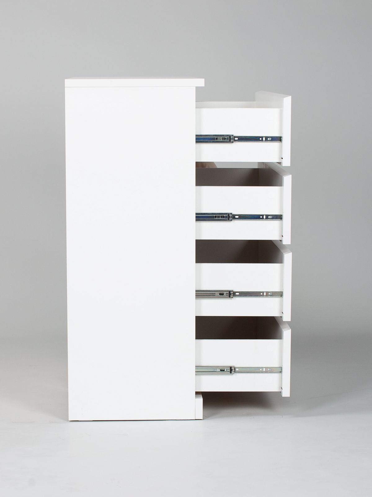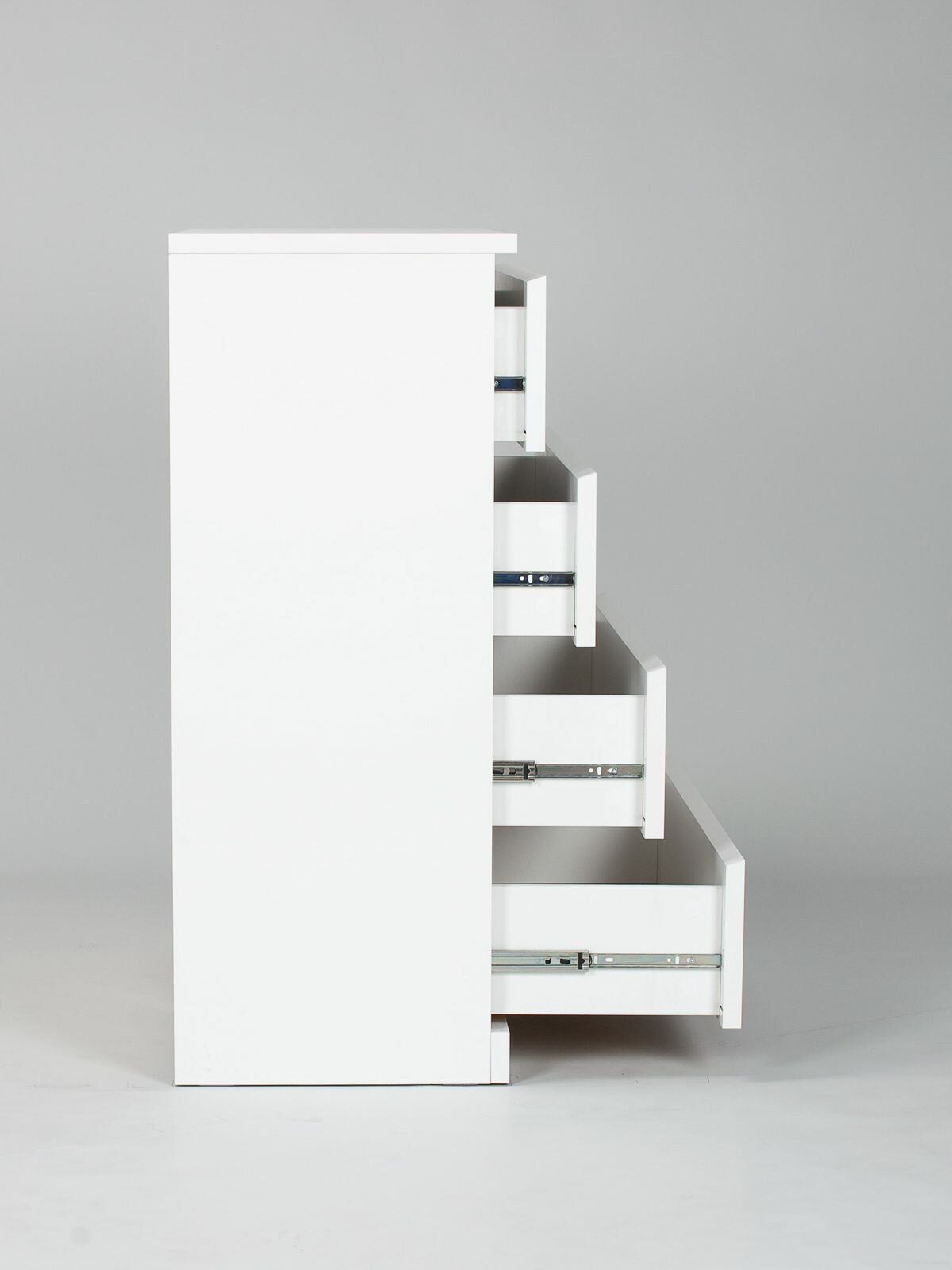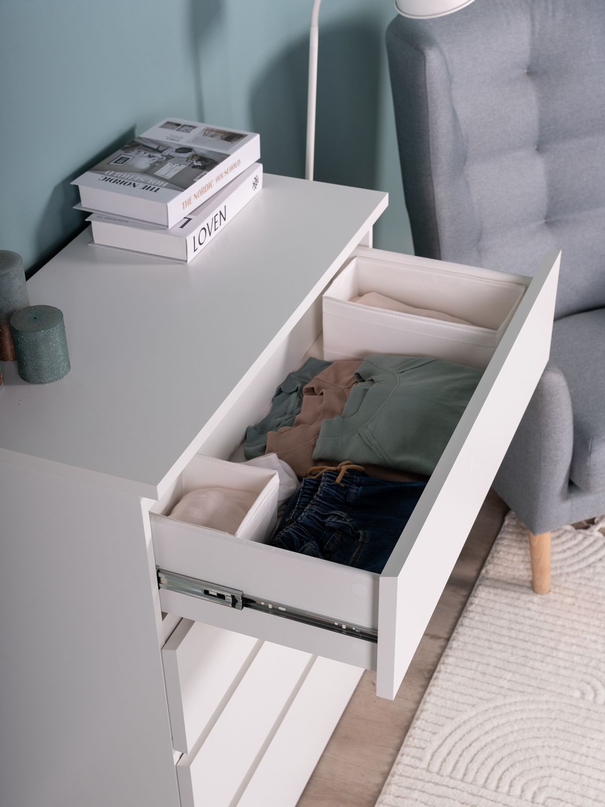Отличный комод, не икея, но очень похож. Как и в прошлых отзывах указано, направляющие не очень, планируем менять. Из-за них ящики немного заедают и не закрываются до конца.