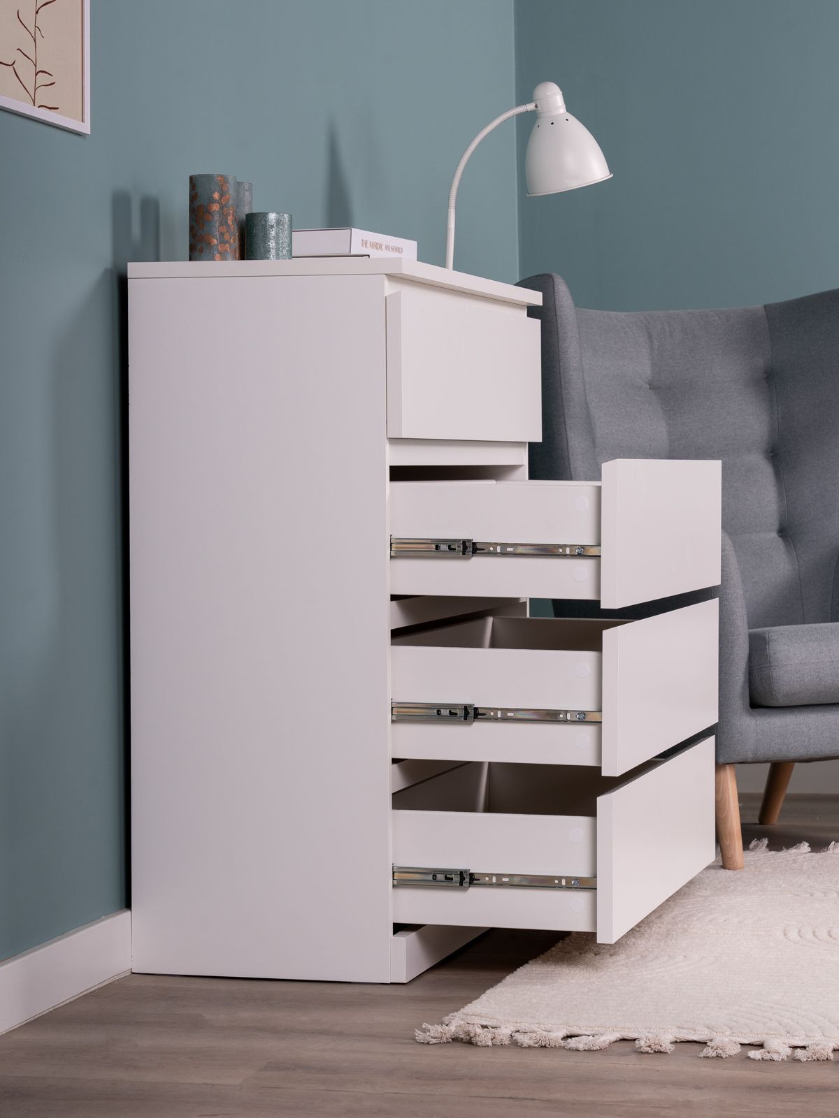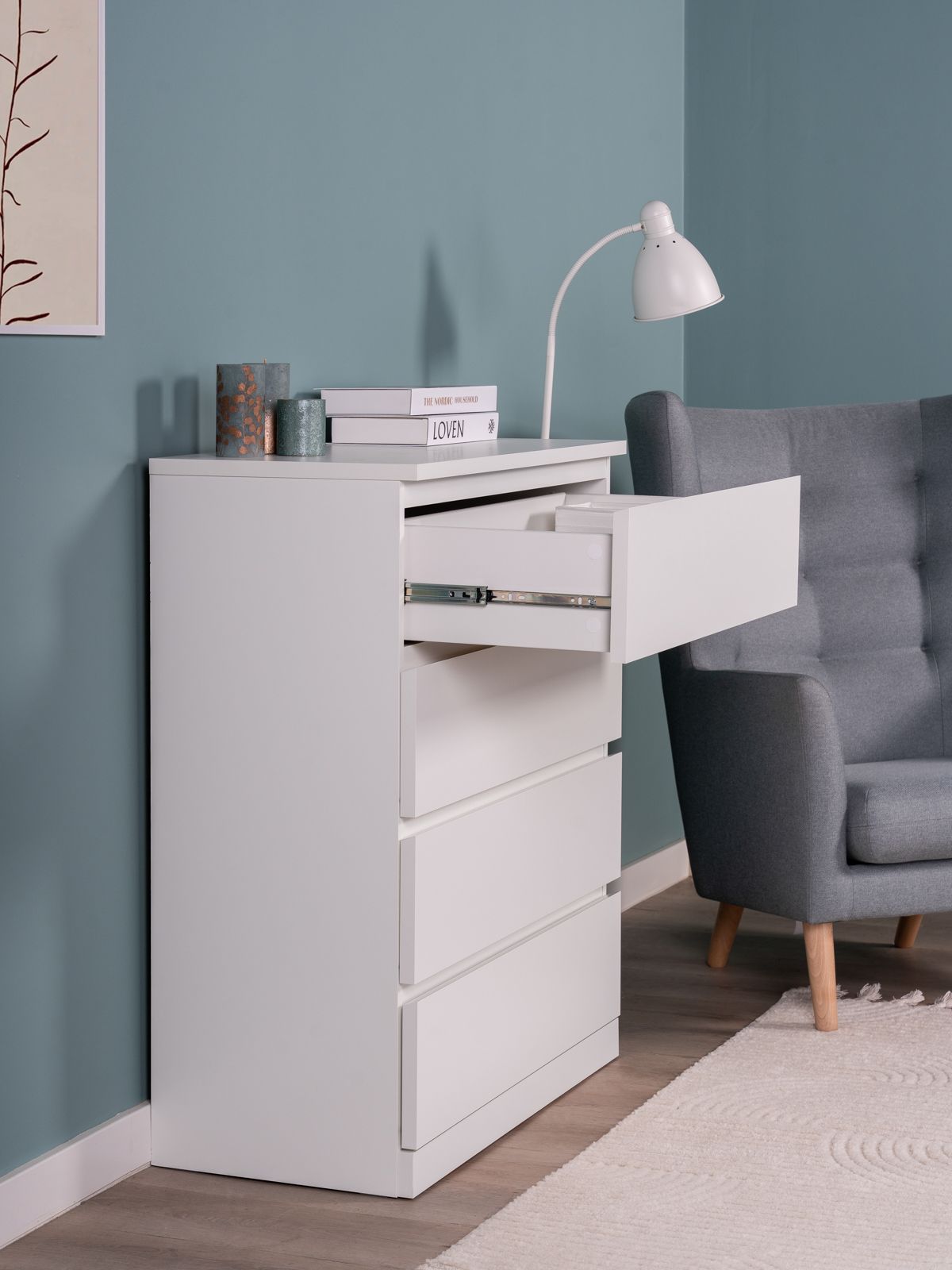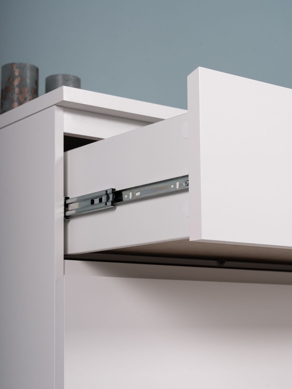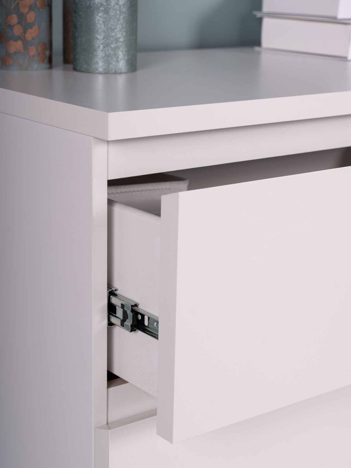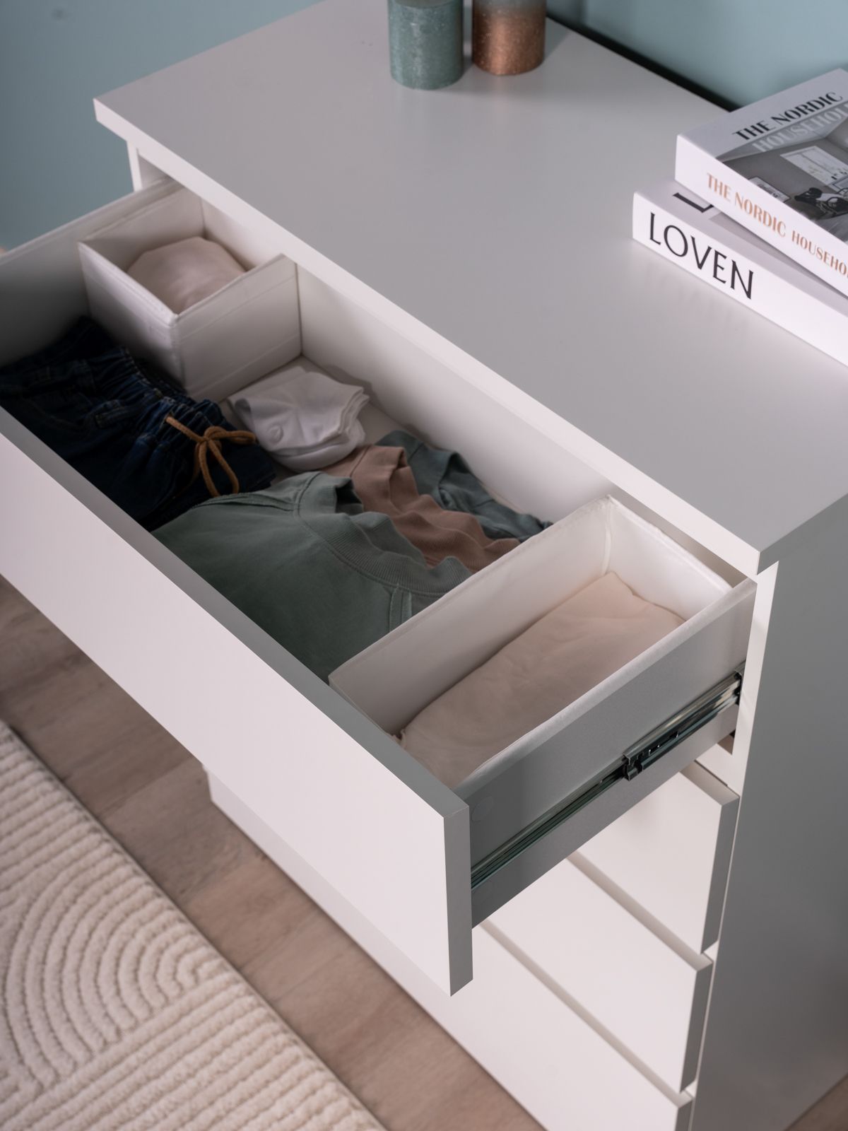 Отличный комод, не икея, но очень похож. Как и в прошлых отзывах указано, направляющие не очень, планируем менять. Из-за них ящики немного заедают и не закрываются до конца.