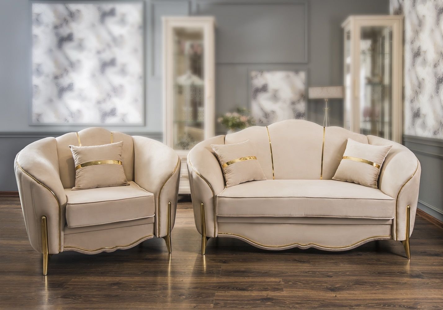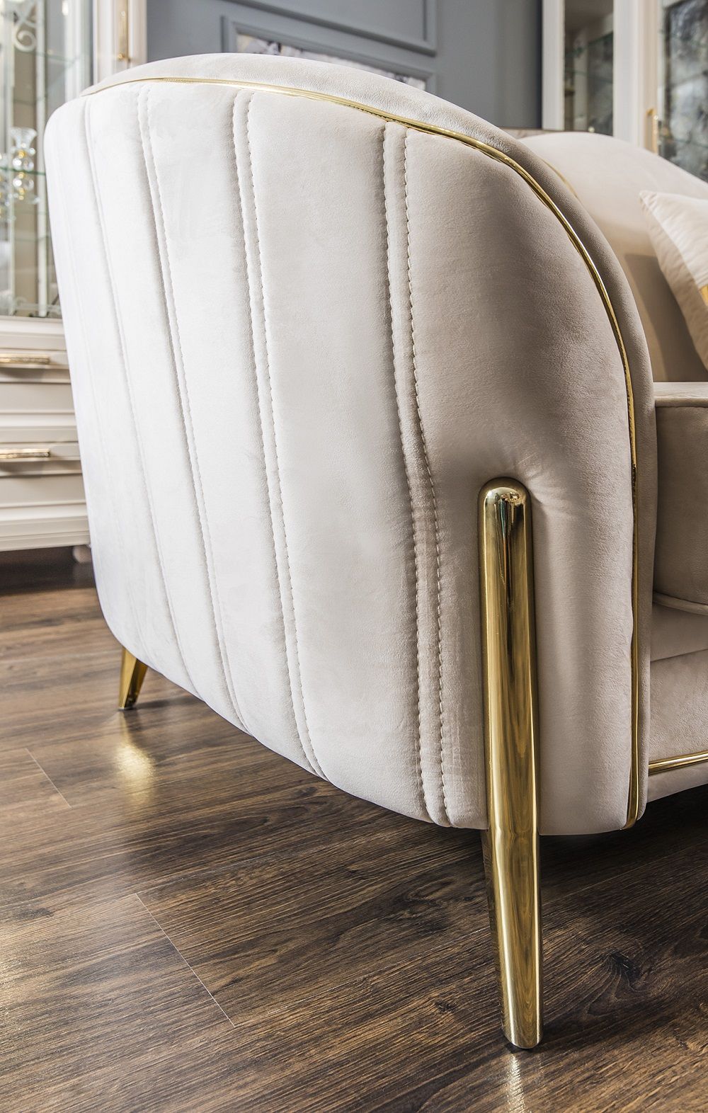 Утонченные элементы, роскошная обивка, витиеватые накладки доставят эстетическое наслаждение своим владельцам. Бежевый цвет «мокко» мебели позволяет визуально увеличить пространство спальни, подчеркнуть важные детали, добавив в пространство легкости и света.