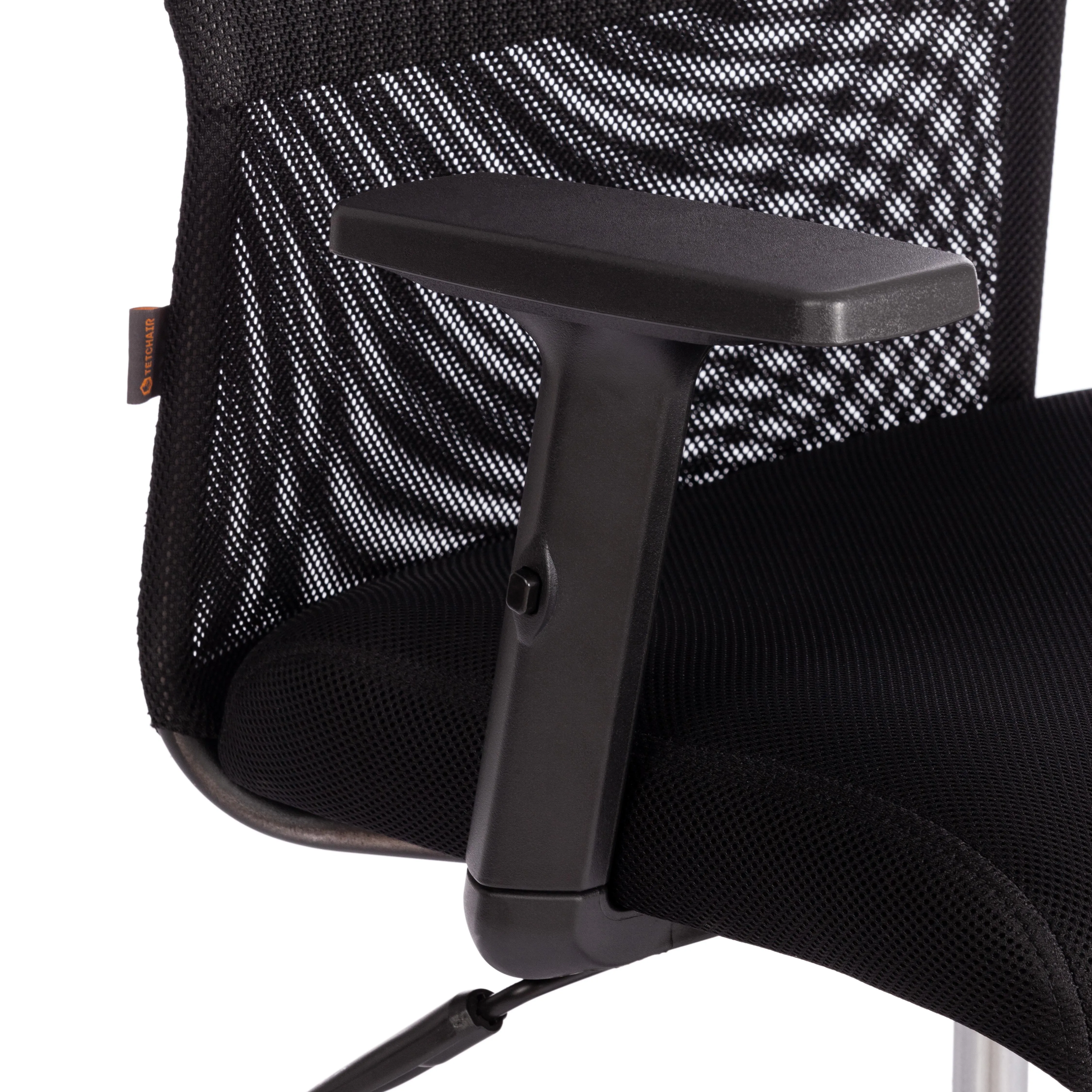 Практичное компьютерное кресло PRACTIC PLT – стильное решение для создания идеального интерьера в рабочем кабинете офиса или городской квартиры или загородного дома. Прочная 5-лучевая полиамидная крестовина диаметром 650 мм надежна и устойчива к усиленной эксплуатации. Подлокотники Т-образные с регулировкой по высоте, накладка из текстурированно пластика, механизм регулировки высоты сиденья и угла наклона до 15 градусов позволят принять комфортную позу и снять напряжение с позвоночника. Интегрированный в чехол подголовник сделает длительное времяпрепровождение за компьютером комфортным и приятным. Модель оборудована газлифтом 3 класса с ходом 100 мм. Мягкое сиденье с наполнителем из пенополиуретана плотностью не менее 30 кг/м3 обладает высокими эксплуатационными качествами, не меняет форму на протяжении длительного времени. Благодаря высококачественным полиамидным роликам кресло легко перемещается из одного помещения в другое. Колесики дополнительно прорезинены, не царапают напольное покрытие и подходят для использования на паркете и ламинате. Диаметр штока ролика – 11 мм. Анатомическая спинка и удобная посадка модели максимально точно подстраиваются под физические особенности тела человека. Компьютерное кресло обито сеткой плотностью 280 г/м2, обеспечивающей вентиляцию в летний период времени, а также износостойкой высококачественной искусственной кожей, не требующей сложного ухода. Сетка используемая при изготовлении кресла, выдерживает до 25 000 циклов на истирание по Мартиндейлу, экокожа 50 000 циклов. Модель черного цвета выглядит стильно и необычно, подчеркнет безупречный вкус владельца, будет радовать своей долговечностью, красотой и практичностью продолжительное время. Кресло поставляется в разобранном виде. Необходима простая сборка по прилагаемой инструкции. Максимальная нагрузка 120 кг.