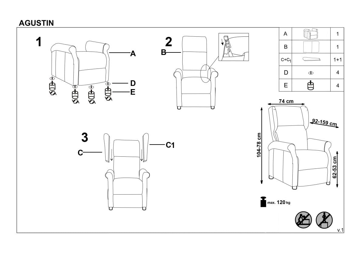 Кресло-реклайнер Halmar AGUSTIN 2 (бежевый)