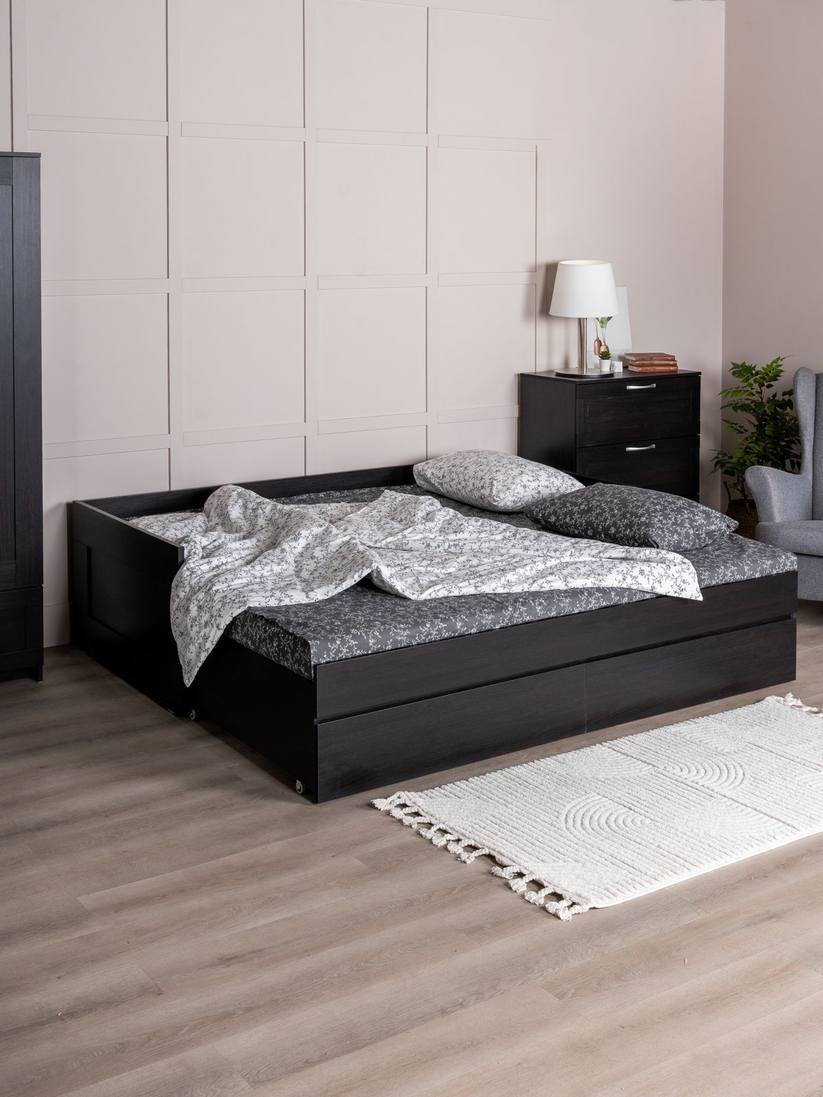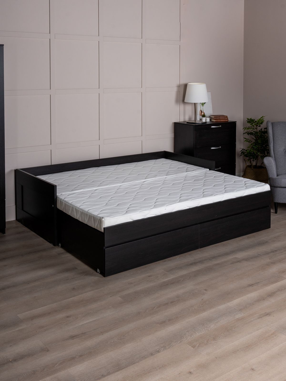 Кровать раздвижная Сириус, с ящиками, 90х200/180х200 см, дуб венге, черно-коричневая
