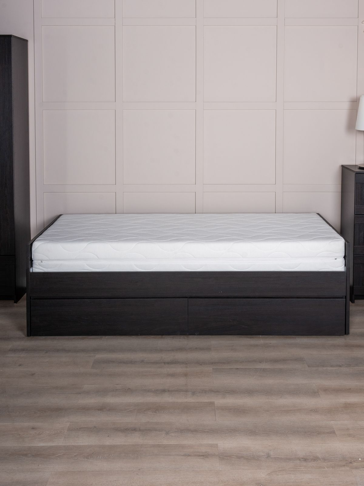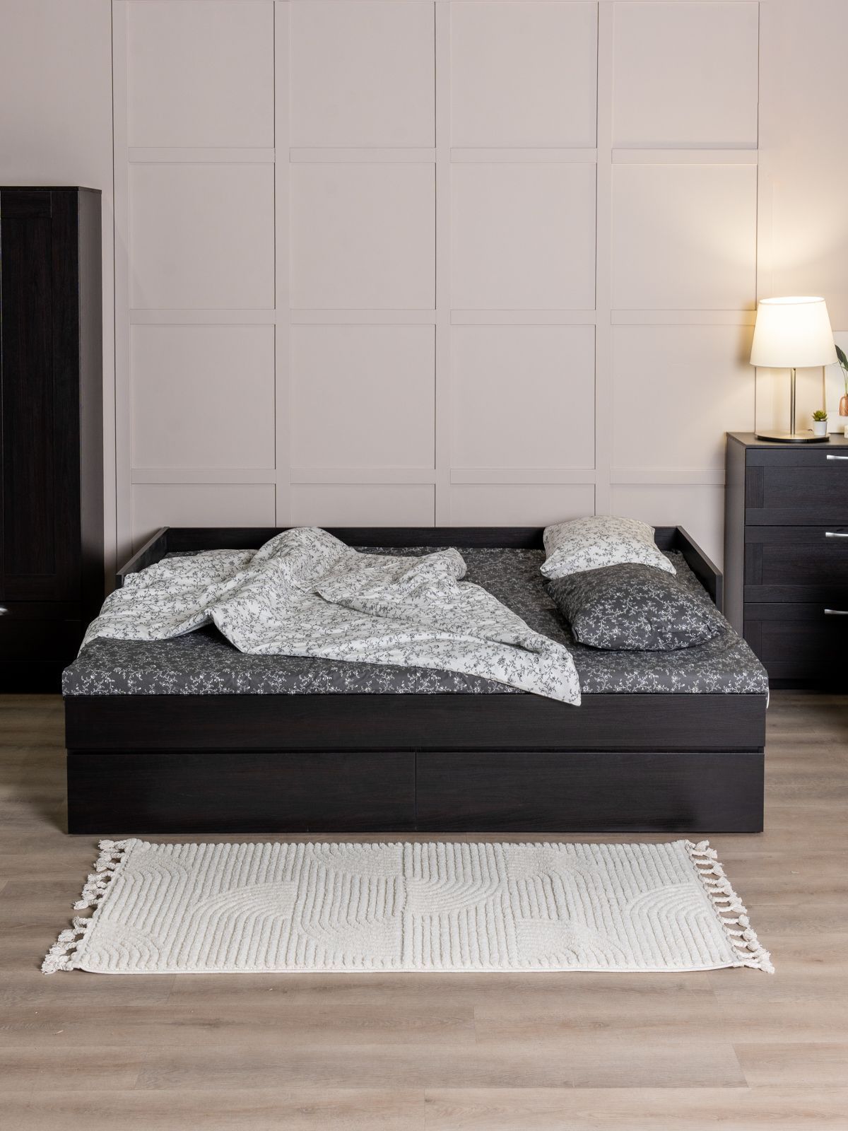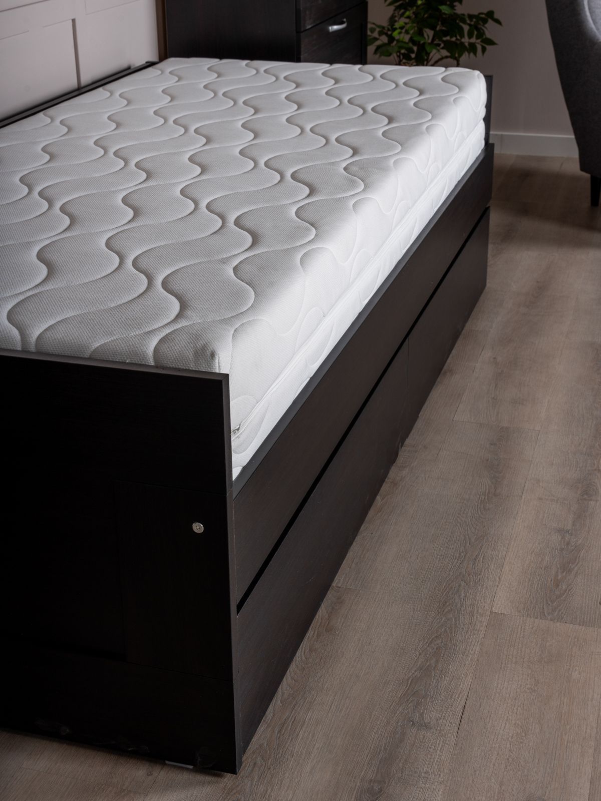 ГУД ЛАКК — знакомая мебель, которую легко купить и собрать! Кровать раздвижная ГУД ЛАКК СИРИУС, с ящиками, 90х200— три в одном: храните, спите, отдыхайте! Серия мебели СИРИУС вдохновлена популярной серией BRIMNES от IKEA, и станет идеальным дополнением вашей квартиры. Почему выбирают раздвижную кровать ГУД ЛАКК СИРИУС, с ящиками, 90х200? Раздвижная кровать СИРИУС — это практичное и стильное решение для тех, кто ценит функциональность, комфорт и рациональное использование пространства. Она идеально подходит для различных задач: ее можно использовать как удобный диван для отдыха, постоянное спальное место шириной или дополнительную кровать для гостей. Благодаря своей универсальности, кушетка станет отличным выбором для небольших квартир, гостиных или многозадачных помещений. Одним из главных преимуществ раздвижной кровати являются встроенные ящики для хранения, расположенные под сиденьем. Они позволяют удобно хранить постельное белье, пледы, подушки или другие вещи, помогая поддерживать порядок и экономить пространство в комнате. Раздвижная кровать СИРИУС отличается компактными размерами, что делает ее идеальной для небольших помещений. Она не занимает много места, но при этом остается функциональной и комфортной. Широкое сиденье обеспечивает удобство для сидения и отдыха, а при необходимости кушетку можно дополнить уникальным раскладывающимся матрасом БЛИЗНЕЦЫ, чтобы создать еще более комфортное спальное место. Раздвижная кровать СИРИУС — это идеальное сочетание функциональности, стиля и доступности. Она станет надежным помощником в организации пространства, создании уюта и комфорта в вашем доме. С ней вы сможете максимально эффективно использовать каждый квадратный метр, не жертвуя при этом стилем и удобством! УЗНАВАЕМЫЙ ДИЗАЙН В СТИЛЕ СКАНДИНАВСКОГО МИНИМАЛИЗМА. Кровать с филенчатым фасадом — это элегантное решение, которое добавляет изысканности, и может использоваться в любых интерьерах. Удобные ручки без острых краев одновременно элегантны и безопасны. ВМЕСТИТЕЛЬНЫЕ ЯЩИКИ. Здесь удобно хранить постельное белье, пледы, подушки или другие вещи, помогая поддерживать порядок и экономить пространство в комнате. ЭКОЛОГИЧНОСТЬ. Наша мебель производится на заводе полного цикла по принципу «от древесины до готового изделия». При этом применяются максимально жесткие требования к экологичности на уровне, установленном для детской мебели. КАЧЕСТВО НА УРОВНЕ IKEA. Кровать СИРИУС изготовлена на сертифицированной фабрике в Беларуси, которая ранее производила мебель для шведского бренда. Кстати, в том числе поэтому наш ассортимент прекрасно сочетается с мебелью ИКЕА, которая, возможно, есть у Вас дома. Сочетается как по дизайну, так и за счет совпадения цветовой гаммы. ЛЕГКОСТЬ СБОРКИ. Вы можете сами легко и быстро собрать нашу мебель, что позволит сэкономить и время на ожидание сборщика, и деньги на оплату его услуг. А поможет в этом не только высокое качество изготовленной мебели, но и понятная пошаговая инструкция. Кстати, если вы вдруг потеряли инструкцию, ее всегда можно скачать здесь, в карточке товара. НАДЕЖНОСТЬ. Несмотря на то, что гарантийный срок на мебель по закону составляет 24 месяца, реальный срок службы нашей мебели составляет до 20 лет. Уж поверьте, сменить обстановку вы решите гораздо раньше, чем выйдет из стро