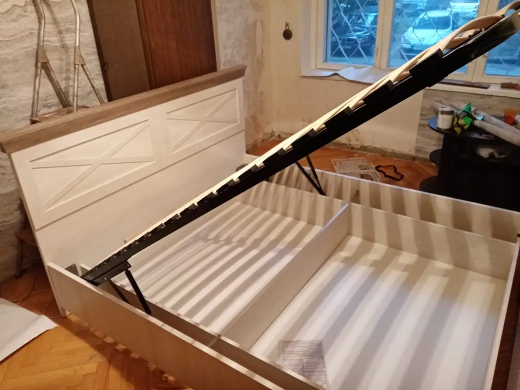 С мужем купили детям на новоселье эту кровать с универсальным дизайном. Ее можно разместить практически в любой обстановке. В модели интересное изголовье. А в изножье есть ножки в таком же стиле. Простой механизм поднятия спальной поверхности, который в ней предусмотрен дает доступ к объемному пространству. Можно хранить спальные принадлежности. Да и не только их. Дети были очень рады. Спасибо вашему магазину и побольше вам хороших клиентов.