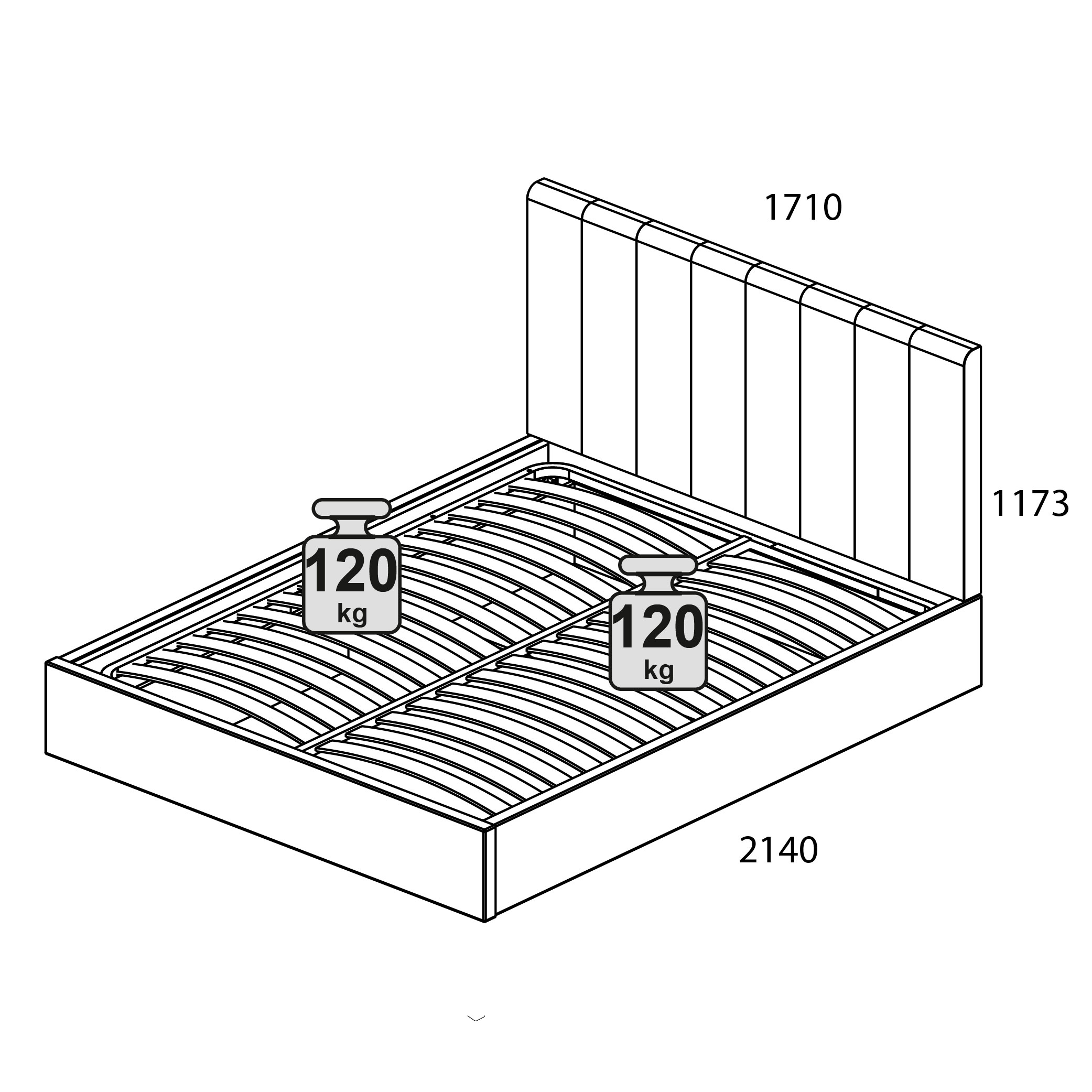 Размер спального места кровати 160 х 200 см. Рекомендуется использовать матрас высотой от 20 см. Максимальная нагрузка на одно спальное место составляет 120 кг