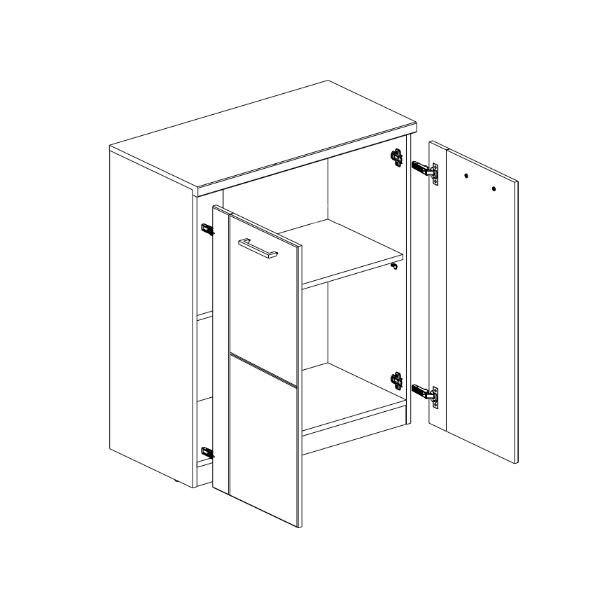 Двустворчатая тумба прямоугольной формы Doorset 2D – это стандартная модель, изготовленная на белорусской фабрике Anrex. Ее каркас из ЛДСП дополнен распашными дверцами и декоративной рамкой, проходящей по периметру. Установленные внутри полки являются простой и удобной системой хранения. Модель имеет глубину 41 и ширину 80 см, ее полезного пространства достаточно для размещения большого количества вещей. Их можно аккуратно разложить на полочки без следов заломов. Высота конструкции в 94 см позволит без проблем доставать вещи из самых дальних углов.