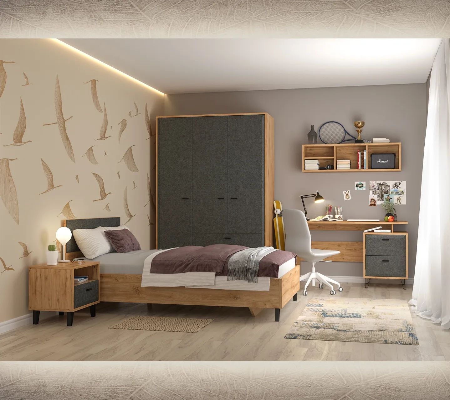 Дверцы напольного шкафа Grace имеют разную высоту и смотрятся экстраординарно. На фоне легкого коричневого оттенка каркаса и выразительного орнамента дуба графитовые фасады выглядят особенно привлекательно. В такой фактурной отделке эта модель гармонично дополнит современный стиль и любую жилую комнату, будь то спальня, прихожая или гостиная.