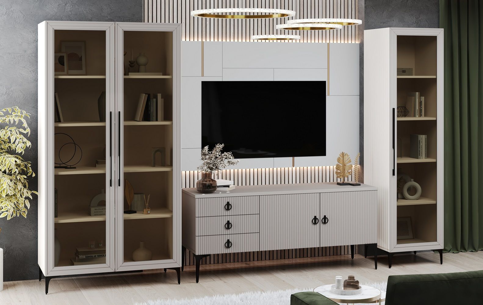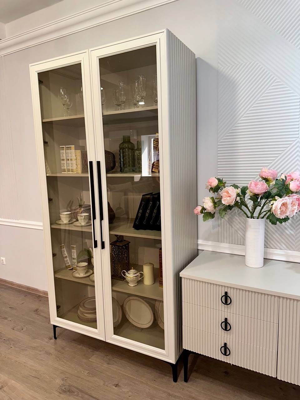 Каждая деталь спальни тщательно продумана, чтобы подарить вам не только максимальный комфорт и эстетическое удовольствие, но и уверенность в высоком качестве мебели. Корпуса и столешницы модулей выполнены из ламинированной древесной плиты европейского качества, Фасады из природного МДФ задекорированы рельефной фрезеровкой и авторский стиль фабрики ЭРА — это финишное покрытие матовая итальянская эмаль ярко серого цвета.