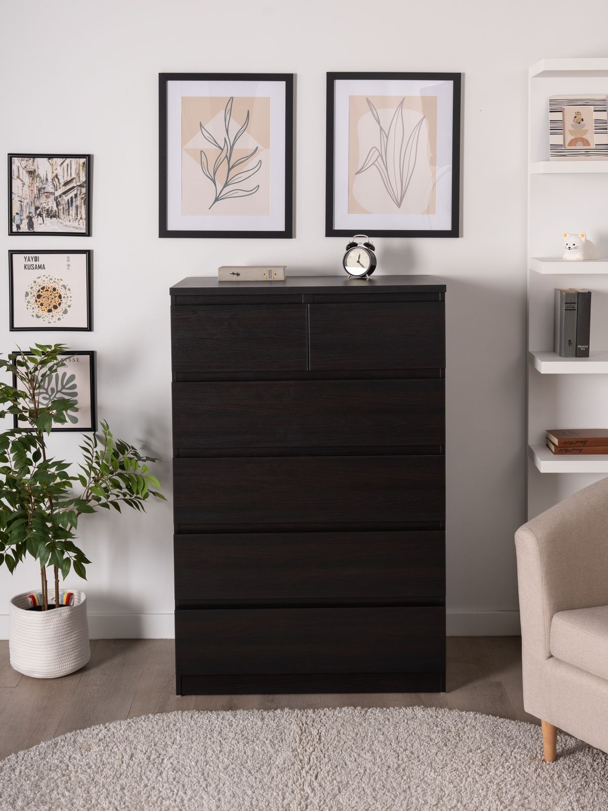 Высокий черный комод МАЛЬТА - это знакомая поклонникам скандинавского стиля серия MALM IKEA. Нейтральный дизайн комода подойдет к любому интерьеру и будет лаконично вписан в спальню, гардеробную или гостиную.