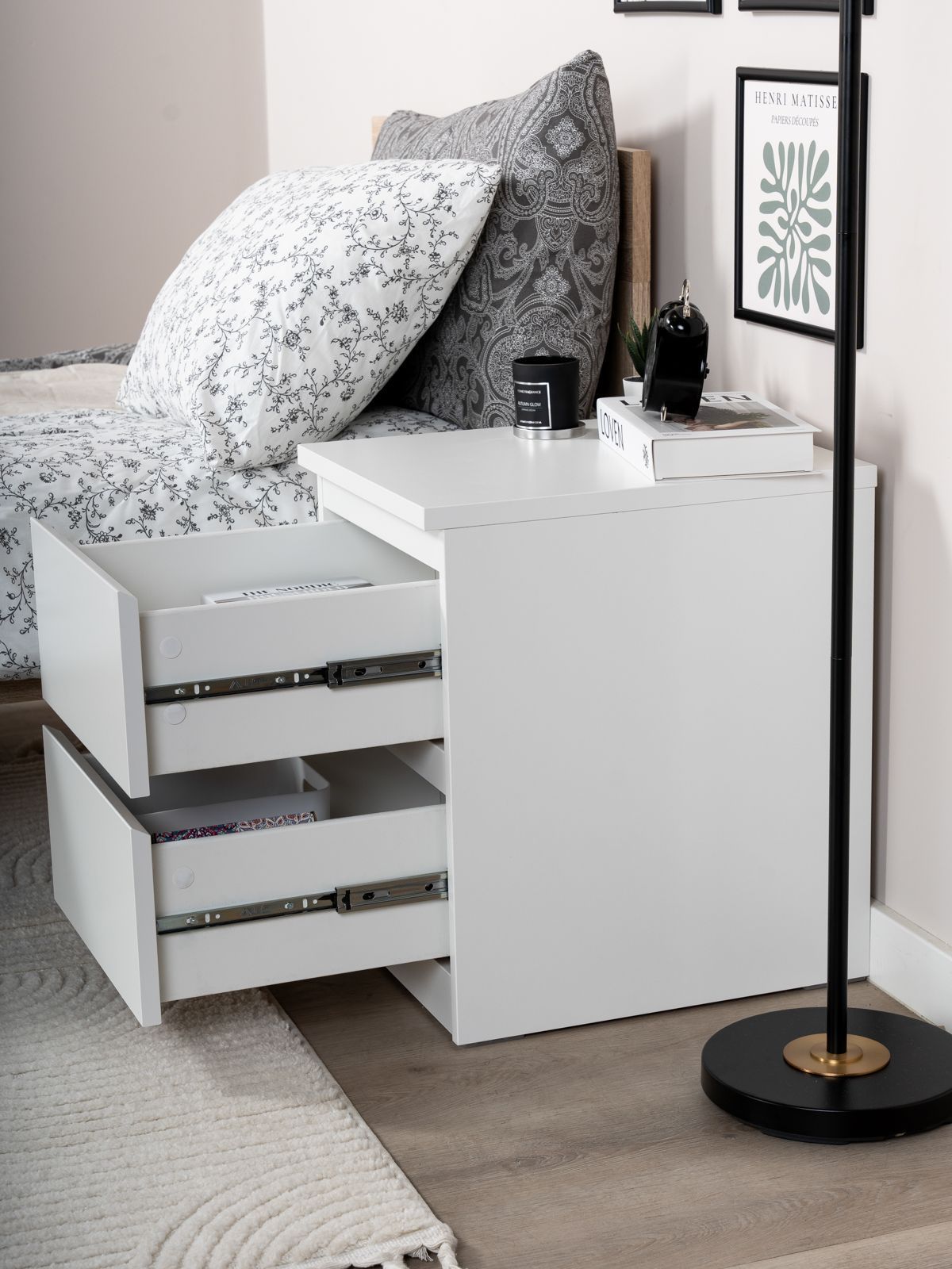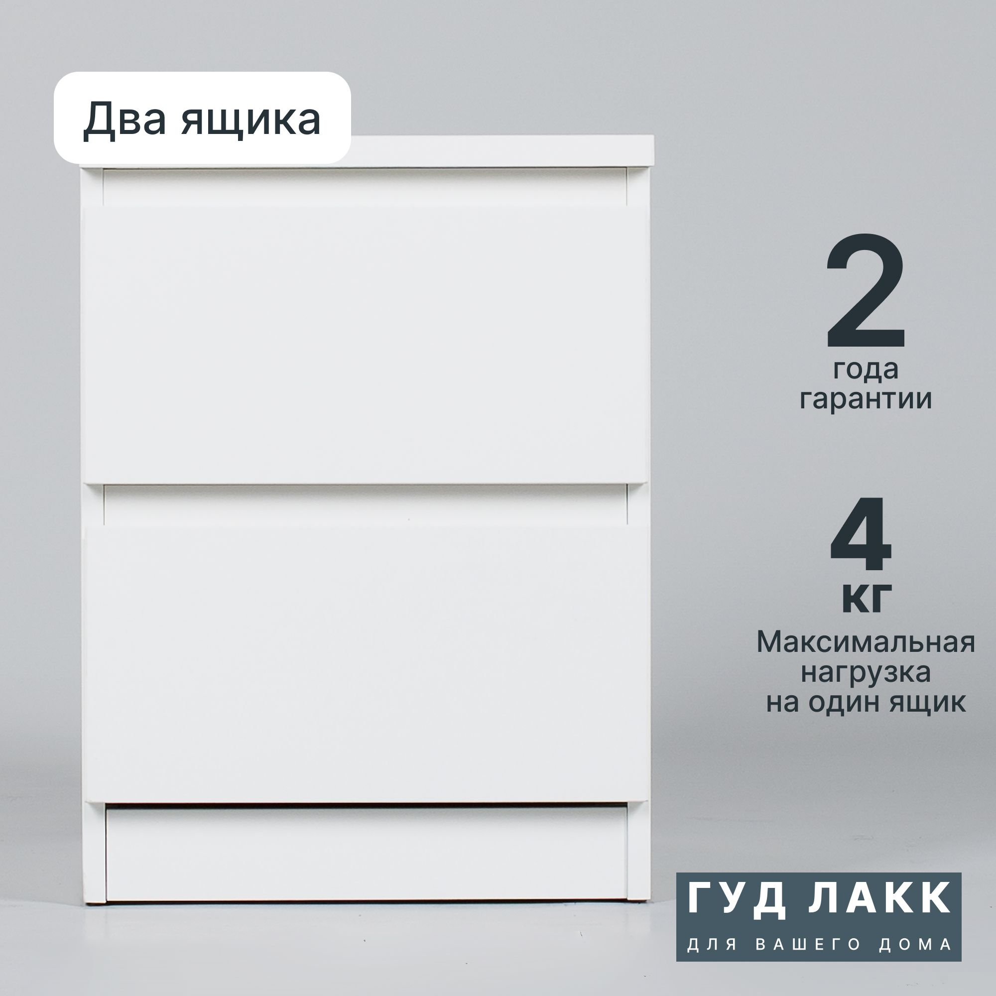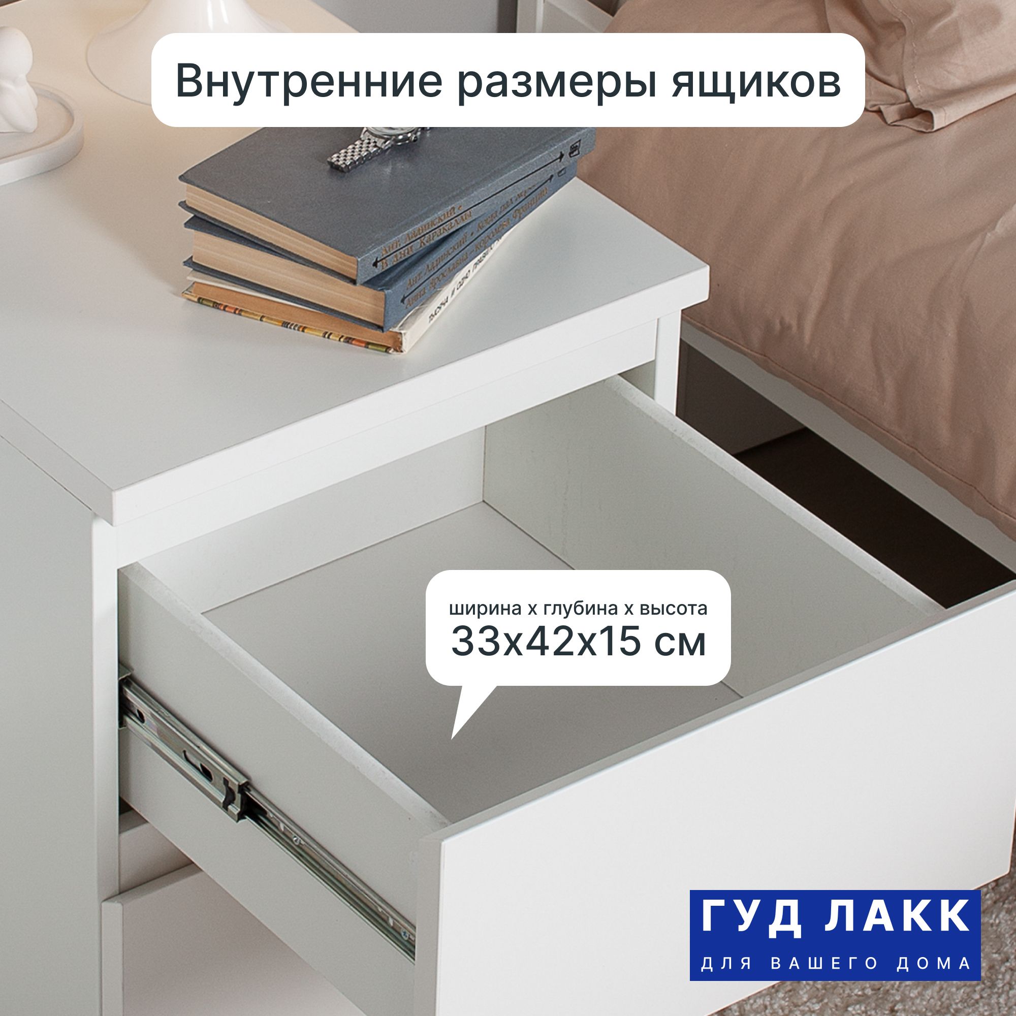 ГУД ЛАКК - знакомая мебель, которую легко купить и собрать! Прикроватная тумба МАЛЬТА - минимализм и функциональность в каждой детали! Серия комодов и тумб МАЛЬТА вдохновлена популярной серией MALM от IKEA, и станет идеальным дополнением вашей спальни. Ее лаконичный дизайн гармонично впишется в любой интерьер, а компактные размеры не займут много места. Почему выбирают тумбу МАЛЬТА? Тумба МАЛЬТА — это прекрасное решение для прикроватного хранения. На столешнице можно разместить светильник для чтения, кружку кофе или поставить телефон на зарядку, а в двух вместительных выдвижных ящиках спрятать все то, что необходимо – положить планшет, книгу и массу необходимых мелочей. Ну и конечно, небольшая, но вместительная и стильная тумба пригодится абсолютно везде). УЗНАВАЕМЫЙ ДИЗАЙН В СТИЛЕ СКАНДИНАВСКОГО МИНИМАЛИЗМА. Дизайн без ручек делает тумбу более лаконичной и визуально легкой, а поверхность выглядит цельной и гармоничной, что создает ощущение порядка и чистоты. ВМЕСТИТЕЛЬНЫЕ ЯЩИКИ. Здесь удобно хранить книги, гаджеты и аксессуары для них, украшения, или мелочи, и многое другое, что обязательно должно быть у Вас под рукой. Тумба МАЛЬТА – это маленькая Нарния). ПЛАВНОЕ ЗАКРЫВАНИЕ И ПОЛНЫЙ ДОСТУП. Доводчики обеспечивают плавное и тихое закрывание ящиков. Направляющие полного выдвижения позволяют выдвигать ящик целиком, предоставляя полный доступ к его содержимому, упрощая поиск вещей и организацию внутреннего пространства ящика. ЭКОЛОГИЧНОСТЬ. Наша мебель производится на заводе полного цикла по принципу «от древесины до готового изделия». При этом применяются максимально жесткие требования к экологичности на уровне, установленном для детской мебели. КАЧЕСТВО НА УРОВНЕ IKEA. Тумба МАЛЬТА изготовлена на сертифицированной фабрике в Беларуси, которая ранее производила мебель для шведского бренда. Кстати, в том числе поэтому наш ассортимент прекрасно сочетается с мебелью ИКЕА, которая, возможно, есть у Вас дома. Сочетается как по дизайну, так и за счет совпадения цветовой гаммы. ЛЕГКОСТЬ СБОРКИ. Вы можете сами легко и быстро собрать нашу мебель, что позволит сэкономить и время на ожидание сборщика, и деньги на оплату его услуг. А поможет в этом не только высокое качество изготовленной мебели, но и понятная пошаговая инструкция. Кстати, если вы вдруг потеряли инструкцию, ее всегда можно скачать здесь, в карточке товара. НАДЕЖНОСТЬ. Несмотря на то, что гарантийный срок на мебель по закону составляет 24 месяца, реальный срок службы нашей мебели составляет до 20 лет. Уж поверьте, сменить обстановку вы решите гораздо раньше, чем выйдет из строя наша мебель. Мы хорошо знаем жизненный путь нашей мебели. Из Вашей квартиры она переедет на квартиру к детям, потом к внукам, потом на дачу, с дачи – на гараж, а потом, если захотите – вы сможете ее продать! КАЧЕСТВЕННАЯ ПЛОСКАЯ УПАКОВКА. Детали в упаковке уложены максимально плотно, с использованием демпфирующих материалов. Это позволяет максимально снизить риск повреждения при транспортировке. Однако обращаем внимание, что даже самая лучшая упаковка не гарантирует отсутствие повреждений при грубом обращении с товаром в процессе доставки. Но для таких случаев у нас работает сервисная служба, которая всегда готова бесплатно заменить поврежденные элементы (работает ежедневно с 08:00 до 20:00 МСК). ВЫСОКА