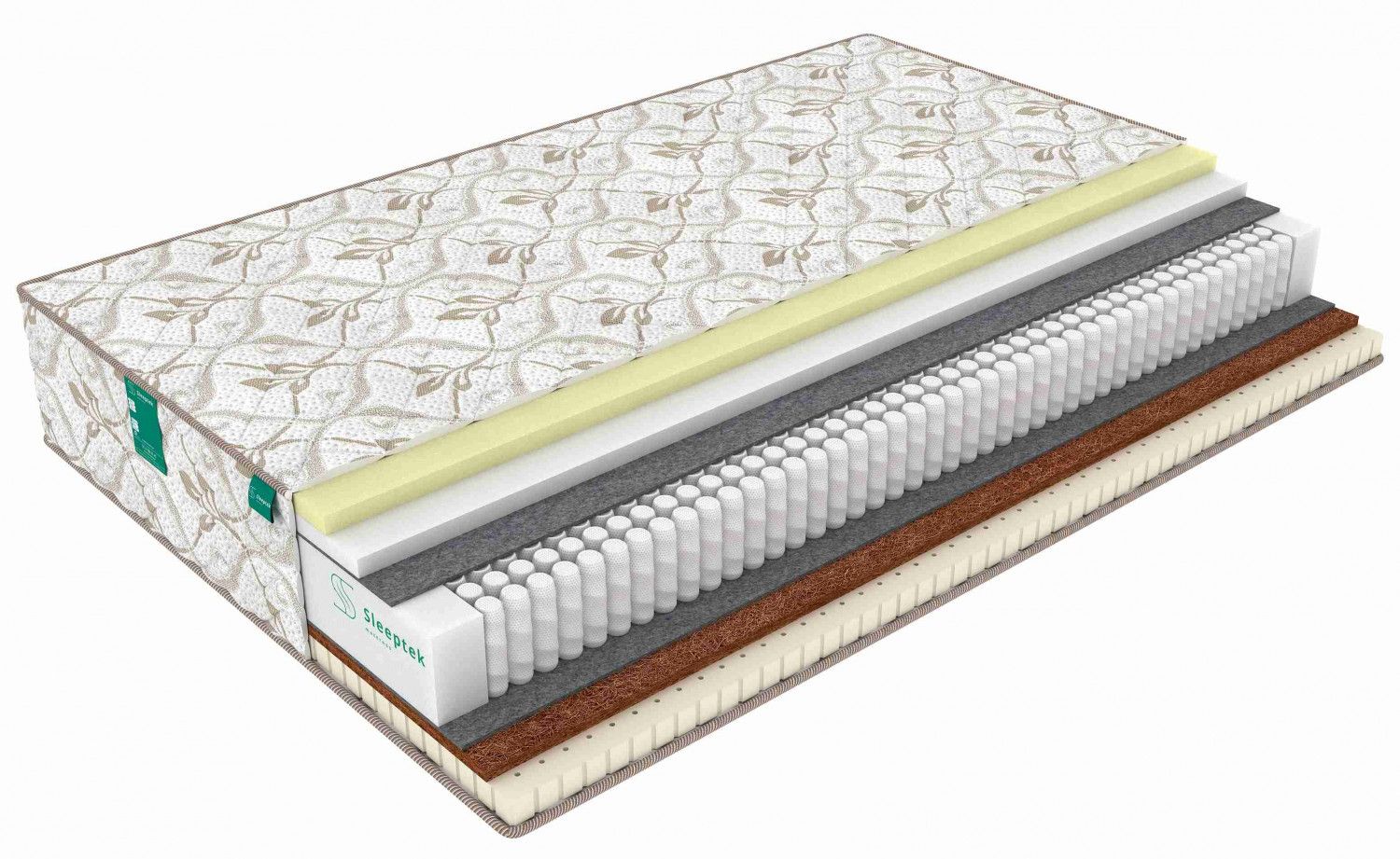 Материал слоевКокос / Мемори (эффект памяти) / Натуральный латекс / Ортопедическая пена