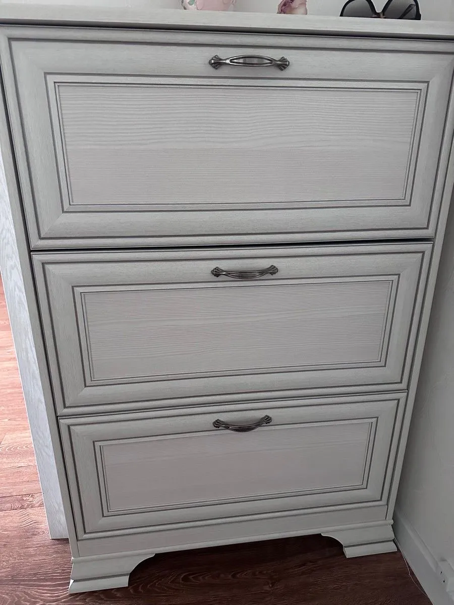 Хорошая обувница, с хорошей фурнитурой. Смотрится красиво. Собрали быстро, все детали были, товар пришёл без брака. Доставка в указанные сроки, упакована хорошо.