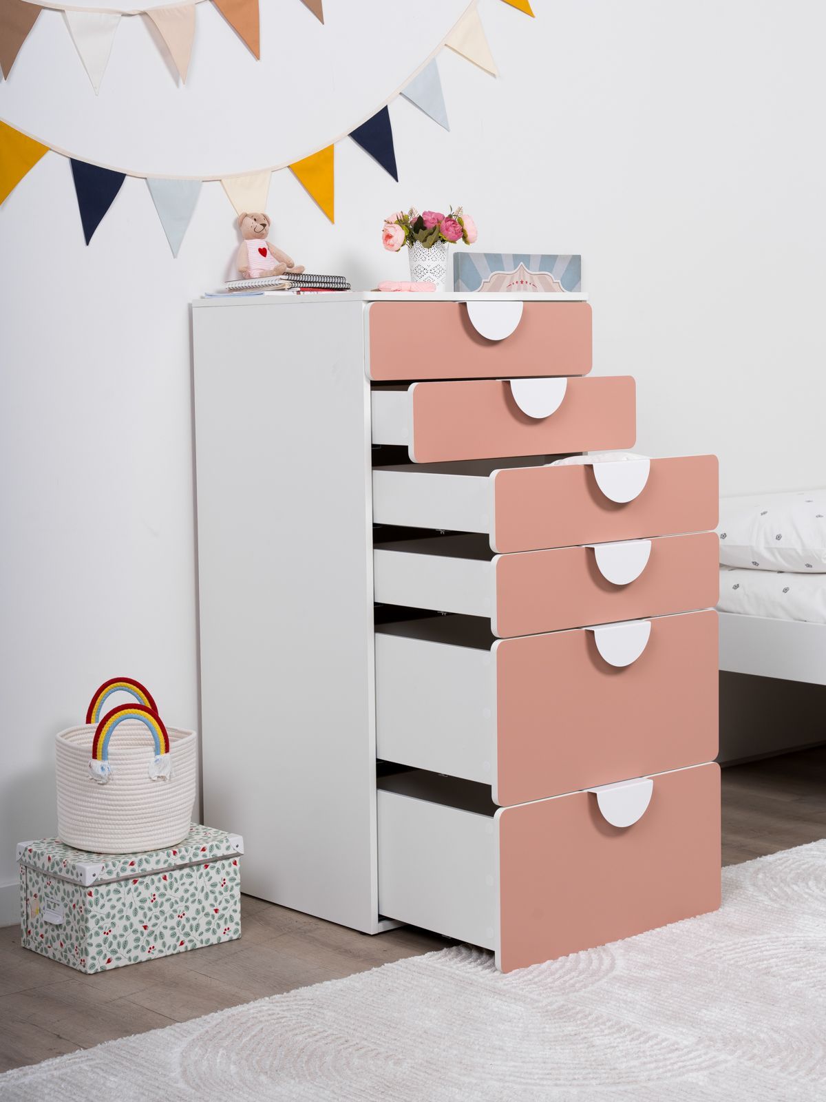 ПИКСИ комод 6 ящиков 60x57x120 ПИКСИ — больше, чем мебель. Умный многофункциональный центр для растущего ребенка! Мечтаете об идеальной мебели для детской, которая растет вместе с вашим малышом? Модульная система ПИКСИ — это именно то, что нужно! Она сочетает в себе стильный дизайн, безупречную функциональность и абсолютную безопасность. Это не просто предмет мебели, а инвестиция в комфорт и гармонию вашего пространства на долгие годы. Умное пространство для игр и порядка! Создайте идеальную систему хранения именно под ваши нужды: • Выбирайте модули с ящиками или дверцами • Легко комбинируйте и достраивайте конструктор • Наращивайте высоту и функциональность когда угодно Ребенок подрос? Появились новые вещи? Нужно больше места? Просто добавьте новый модуль! Собирайте как конструктор - создавайте внушительные системы хранения любого размера без замены мебели. Растёт вместе с вашей семьёй! Почему комод ПИКСИ выбирают заботливые родители? ♡ БЕЗОПАСНОСТЬ ПРЕВЫШЕ ВСЕГО: ü Закругленные края и мягкие формы защитят от случайных ушибов. ü Безопасные ручки, об которые невозможно пораниться. ♡ НАДЕЖНОСТЬ И ВЫСОКОЕ КАЧЕСТВО: ü Направляющие скрытого монтажа с доводчиками. ü Регулируемые по высоте ножки. ü Суперстойкое пигментное покрытие: устойчиво к царапинам, влаге и истиранию. Легко очищается от следов фломастеров и красок. Основные характеристики: ü Узнаваемый дизайн – вдохновлен популярной серией SMASTAD от IKEA. ü Три цвета фасадов для любого дизайна и настроения. ü В серии ПИКСИ скамья, кровать, комоды, шкафы и стеллажи. ü Экологичность – производство соответствует стандартам детской мебели. ü Качество на уровне IKEA – изготовлен на сертифицированной фабрике в Беларуси. ü Легкость сборки – понятная инструкция, экономия на услугах сборщика. ü Надежность – срок службы до 20 лет. ü Плоская упаковка – безопасная транспортировка. ü Сочетаемость – гармонично комбинируется с другими коллекциями ГУД ЛАКК. ГУД ЛАКК – мебель, которую легко купить и собрать!