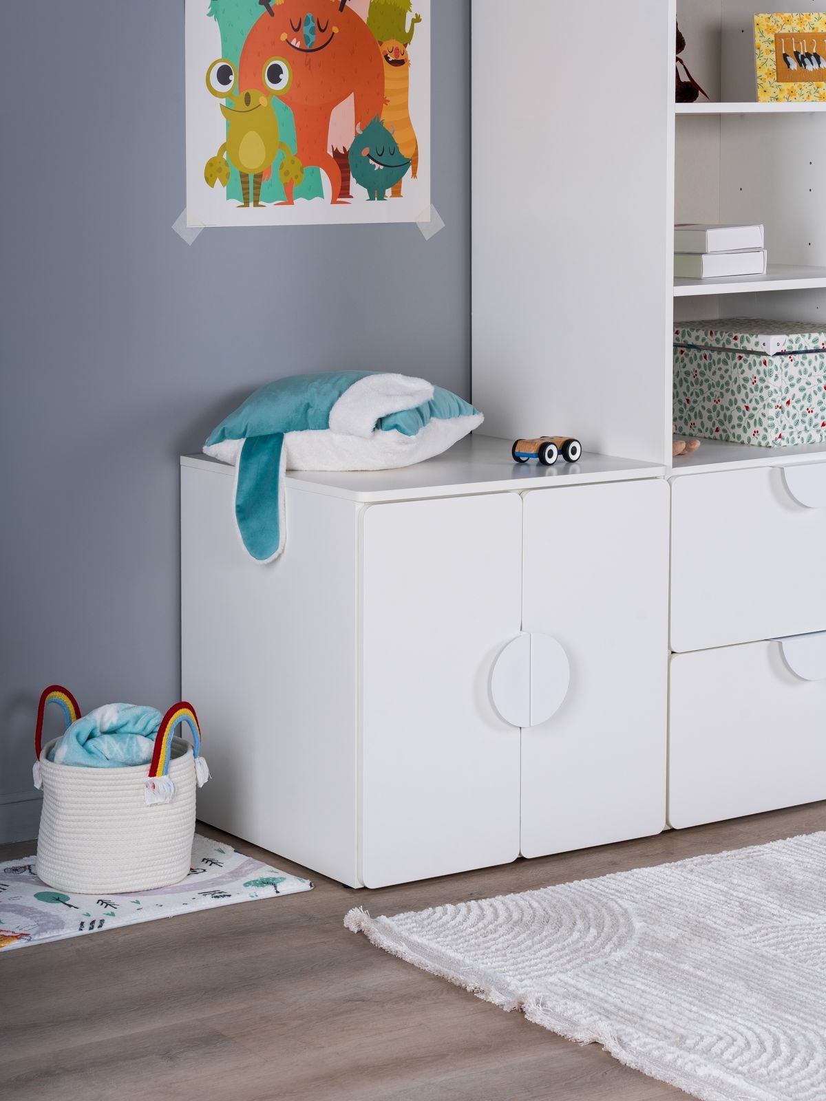 • Наращивайте высоту и функциональность когда угодно Ребенок подрос? Появились новые вещи? Нужно больше места? Просто добавьте новый модуль! Собирайте как конструктор - создавайте внушительные системы хранения любого размера без замены мебели. Растёт вместе с вашей семьёй!