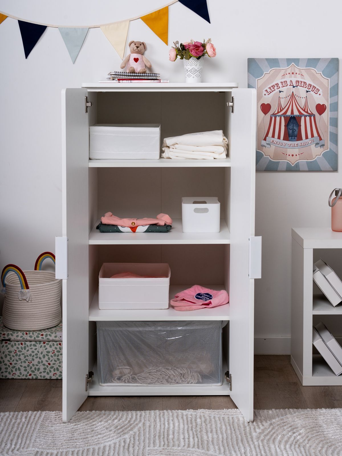 Шкаф распашной Пикси, с двумя дверьми и тремя полками 60х57х120, мечтательный пион