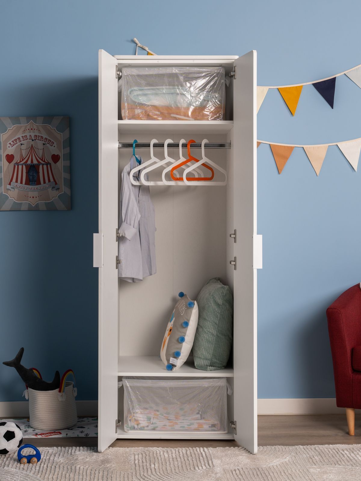 ПИКСИ шкаф распашной с двумя открывающимися дверьми и полкой 60x57x180 ПИКСИ — больше, чем мебель. Умный многофункциональный центр для растущего ребенка! Мечтаете об идеальной мебели для детской, которая растет вместе с вашим малышом? Модульная система ПИКСИ — это именно то, что нужно! Она сочетает в себе стильный дизайн, безупречную функциональность и абсолютную безопасность. Это не просто предмет мебели, а инвестиция в комфорт и гармонию вашего пространства на долгие годы. Умное пространство для игр и порядка! Создайте идеальную систему хранения именно под ваши нужды: