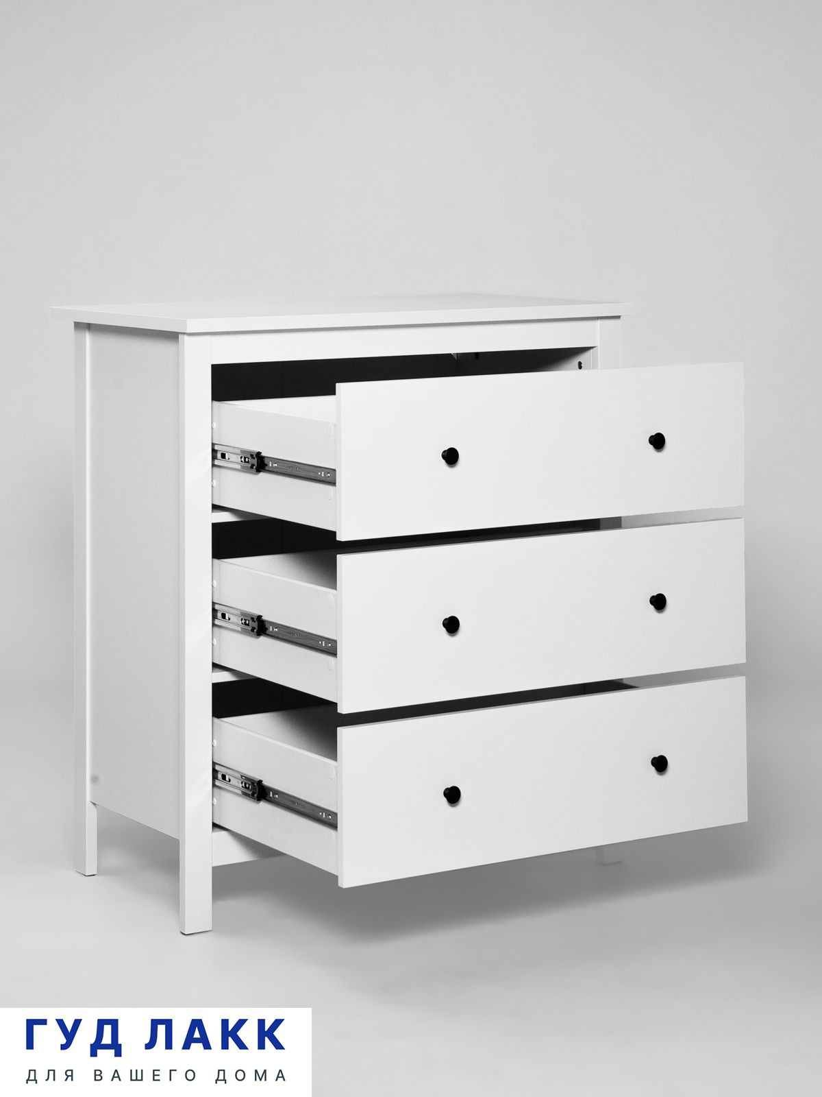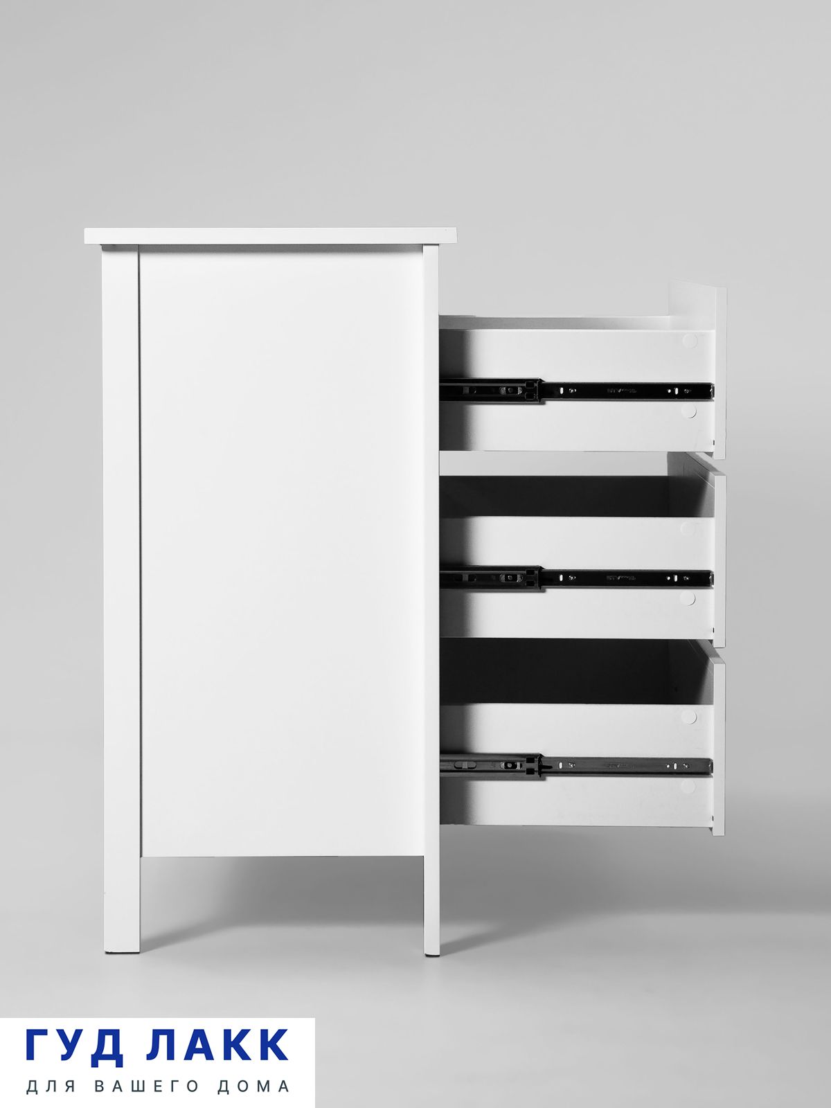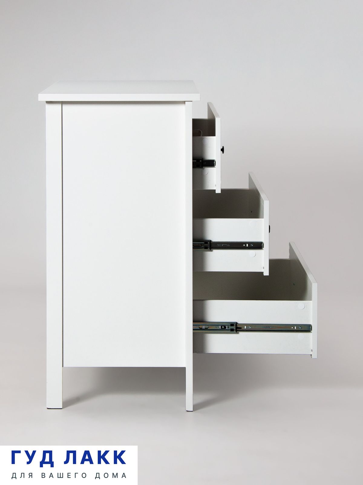 Искали не слишком вычурный, но современный комод, и в итоге остановились на этом. Белый цвет освежает комнату, фасады смотрятся аккуратно, без лишнего блеска. Ящики ходят мягко, ничего не заедает, внутри достаточно места даже для крупных вещей. В эксплуатации пока только положительные впечатления.