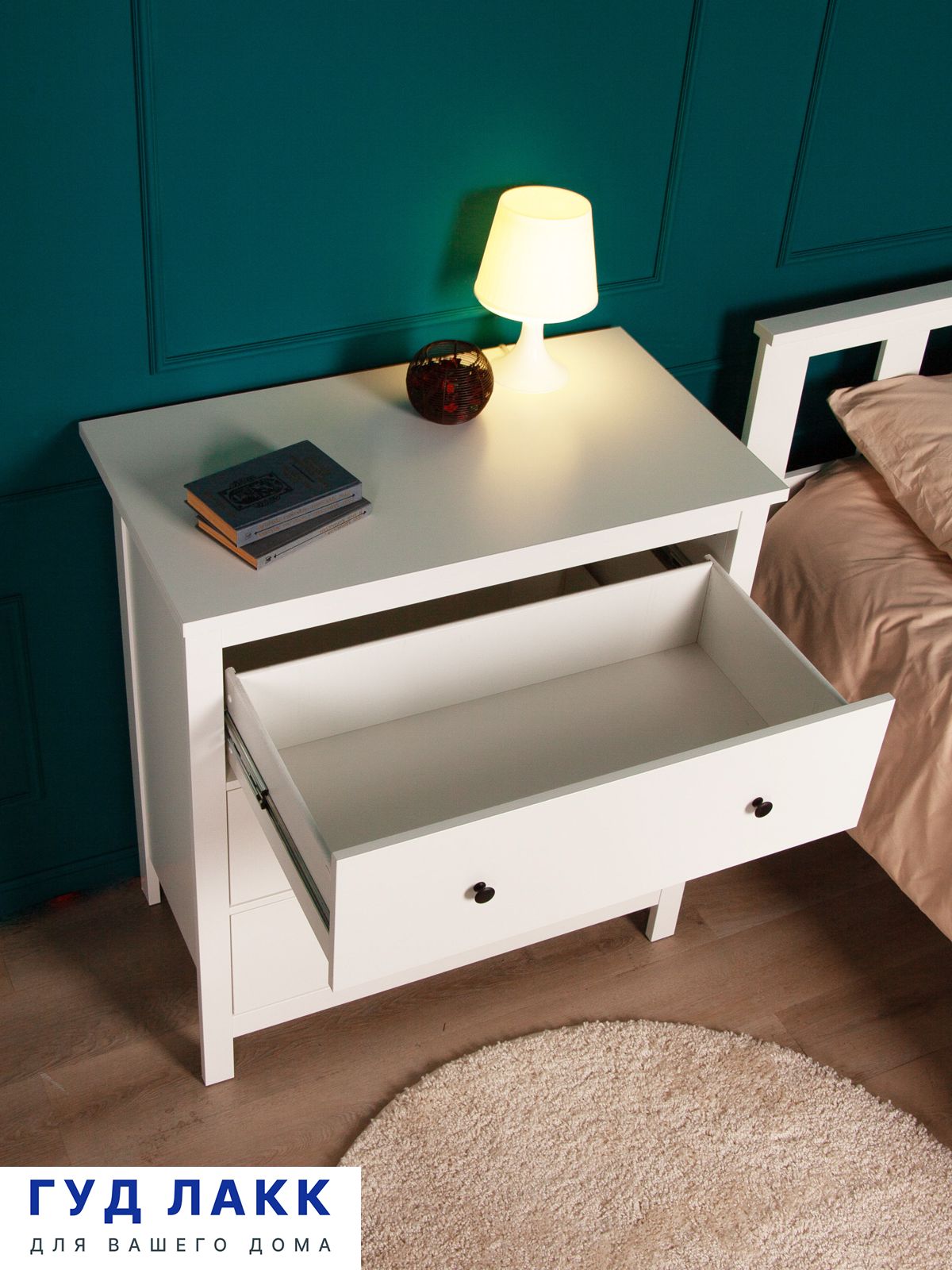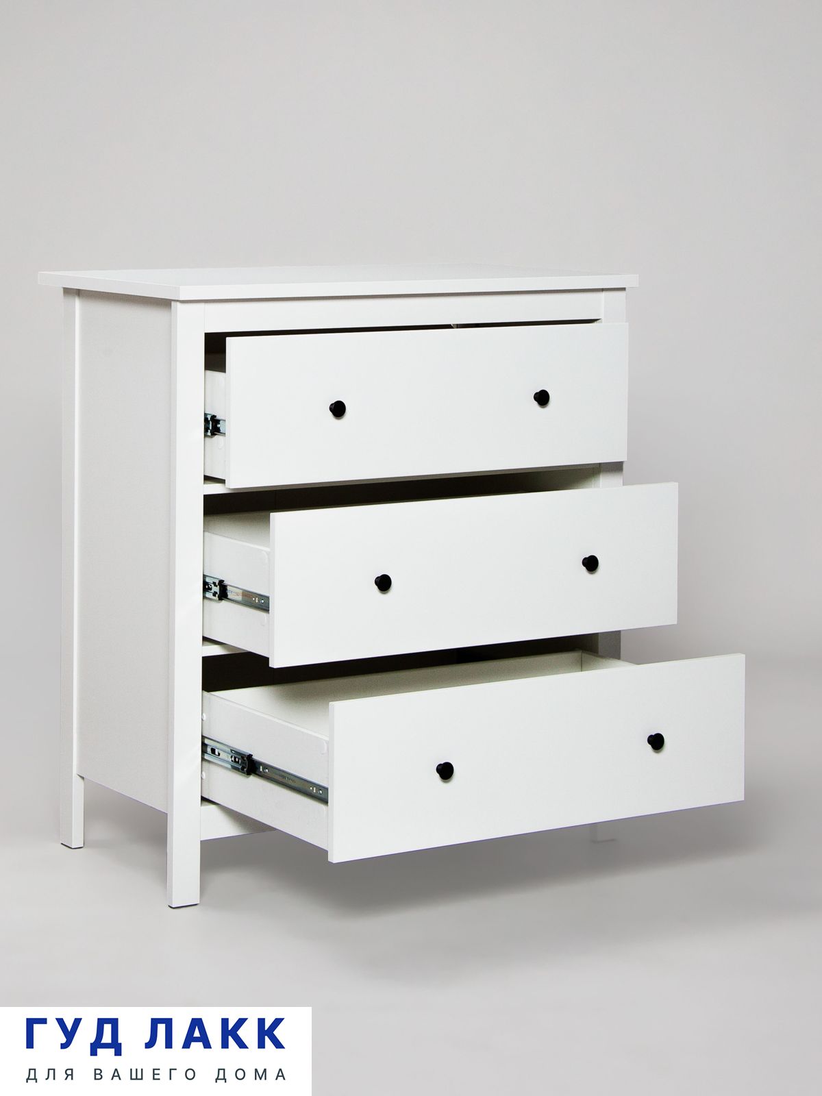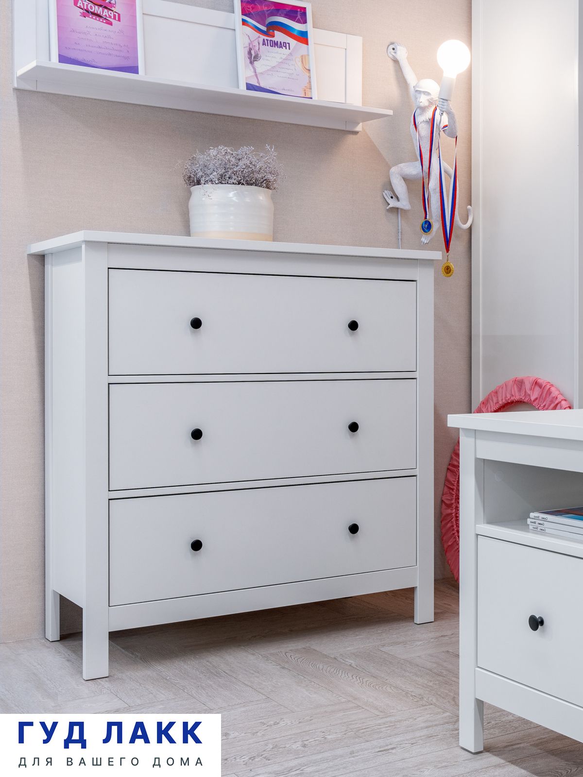 Искали не слишком вычурный, но современный комод, и в итоге остановились на этом. Белый цвет освежает комнату, фасады смотрятся аккуратно, без лишнего блеска. Ящики ходят мягко, ничего не заедает, внутри достаточно места даже для крупных вещей. В эксплуатации пока только положительные впечатления.