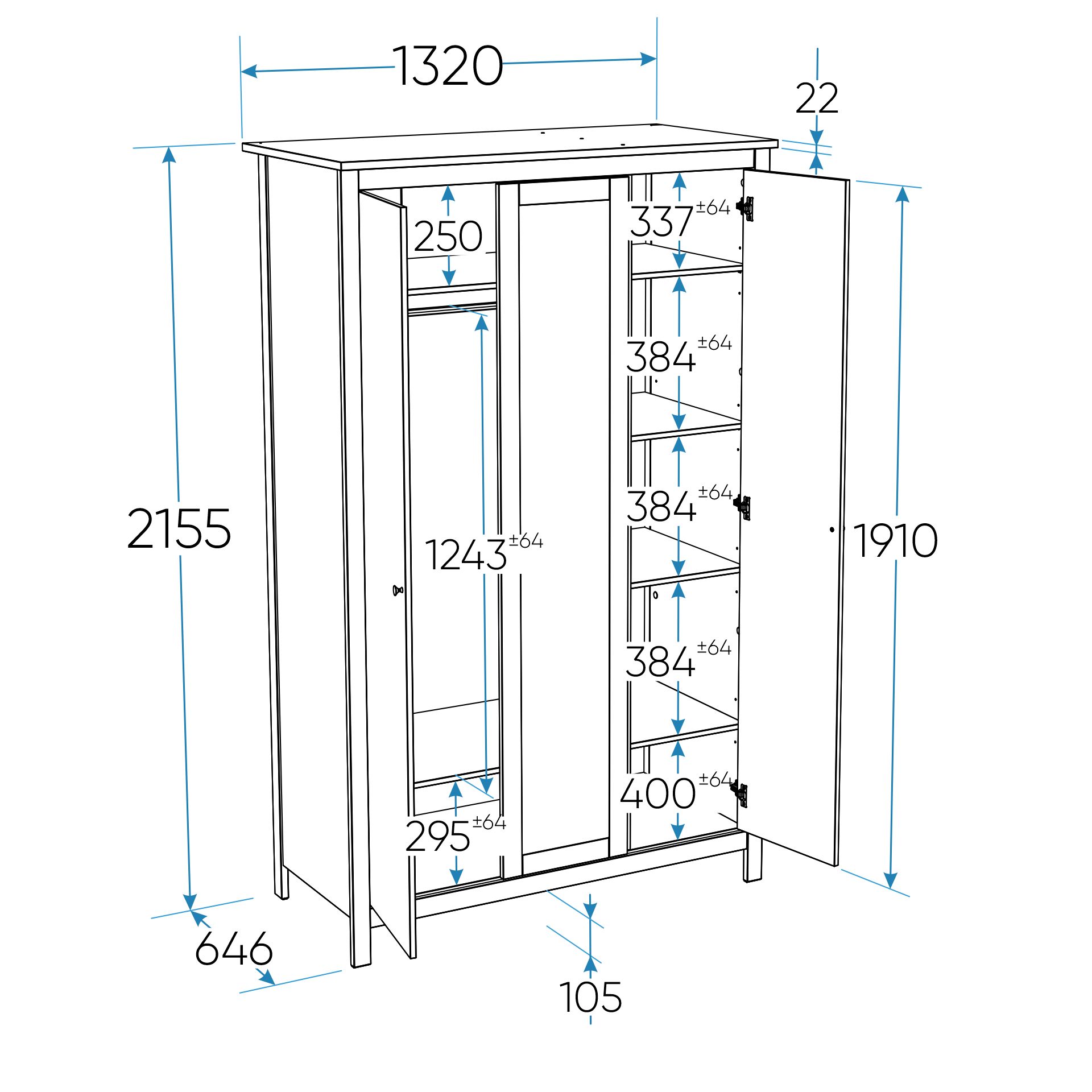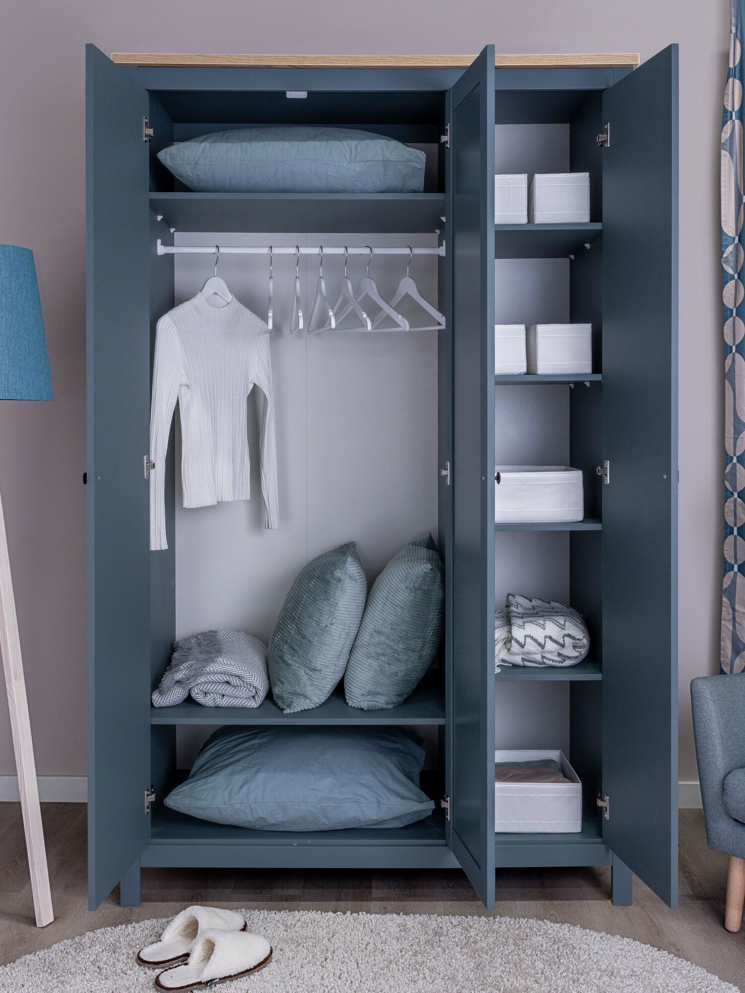 ГУД ЛАКК - знакомая мебель, которую легко купить и собрать! Шкаф распашной САГА 3 двери — дизайн и функциональность в каждой детали! Серия мебели САГА вдохновлена популярной серией HEMNES в традиционном стиле от IKEA, и станет идеальным дополнением вашей квартиры. Почему выбирают Шкаф распашной САГА 3 двери? Шкаф САГА — это функциональное и стильное решение для хранения вещей. Он оснащен шестью регулируемыми полками, что позволяет гибко организовать пространство внутри шкафа в зависимости от ваших потребностей. Для удобного размещения одежды на плечиках предусмотрена платяная штанга. Одна из дверей шкафа выполнена с зеркальной поверхностью, что добавляет ему практичности и визуально расширяет пространство. Все двери шкафа САГА снабжены доводчиками. Шкаф САГА идеально подойдет для спальни, прихожей или гардеробной, сочетая в себе удобство, эргономичность и современный дизайн. Все части шкафа, подверженные наибольшей нагрузке, изготовлены из прочного МДФ, что гарантирует устойчивость и долговечность даже при активном использовании. Шкаф САГА отличается лаконичным и стильным дизайном, который легко впишется в любой интерьер — от классического до современного. Она станет не только функциональным элементом, но и изысканным украшением вашей спальни. Шкаф стоит на стильных ножках, которые добавляют ему легкости и визуальной воздушности. Это также облегчает уборку под ним, поддерживая чистоту в комнате. Шкаф — это идеальное сочетание функциональности, стиля и удобства. Она поможет организовать пространство, обеспечит комфортное хранение вещей и создаст уютную атмосферу в вашем доме. Дополните свой интерьер этой тумбой и наслаждайтесь порядком и эстетикой!