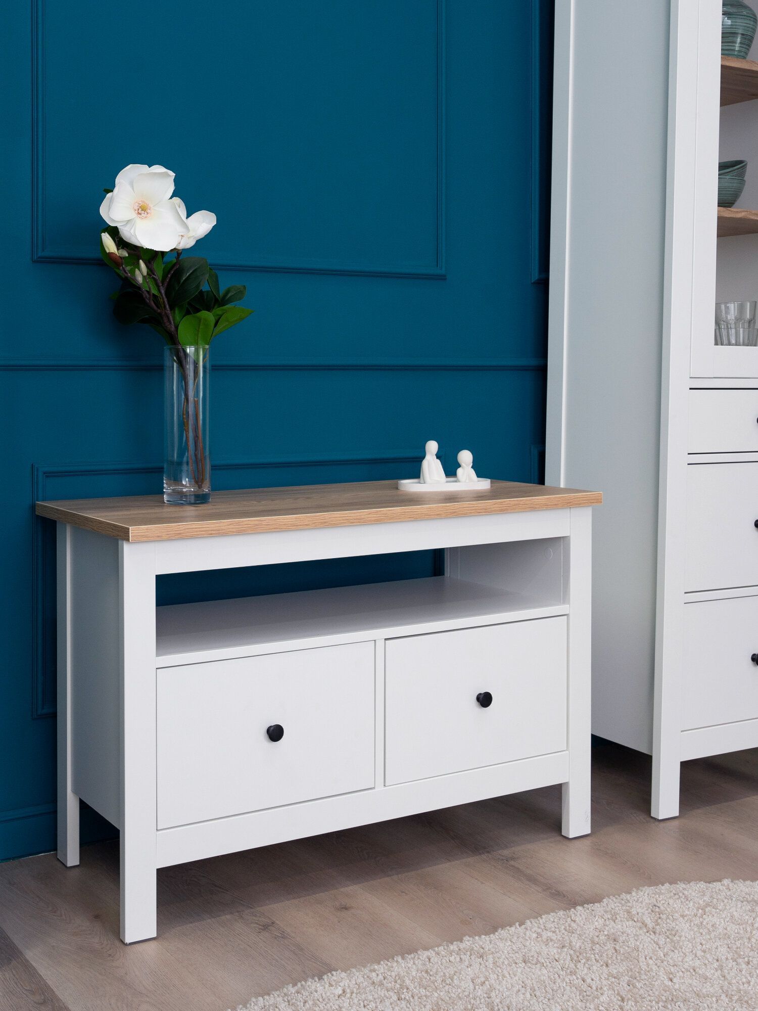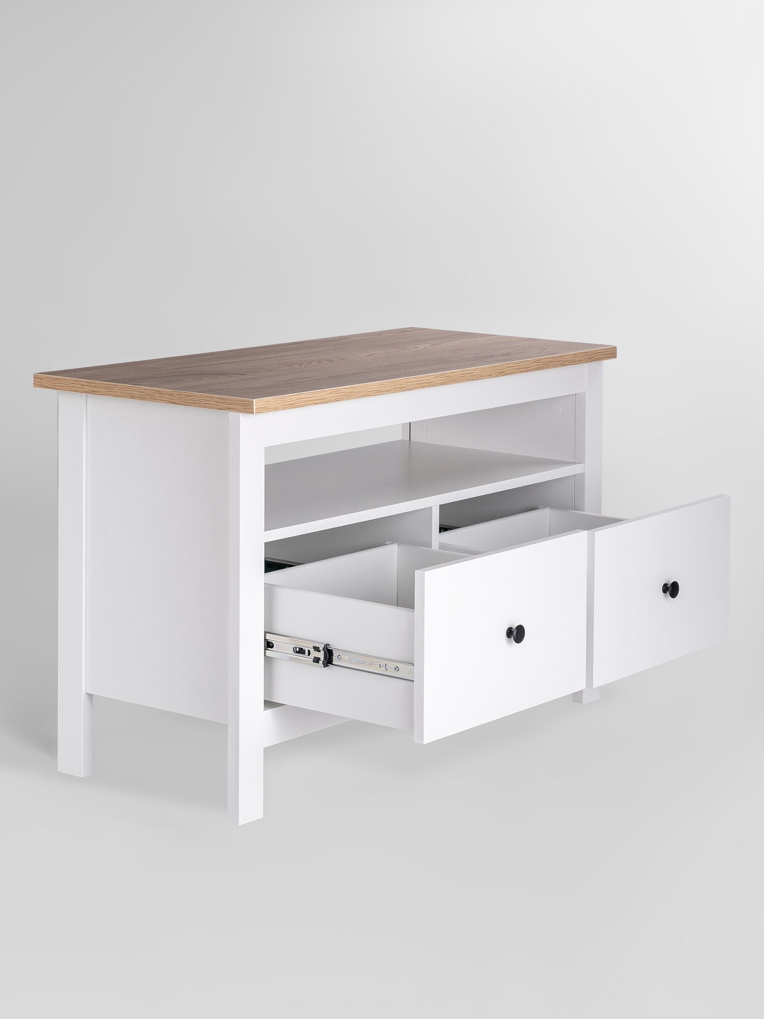 Тумба Сага, 2 ящика, 91х42х63 см, белая/ясень