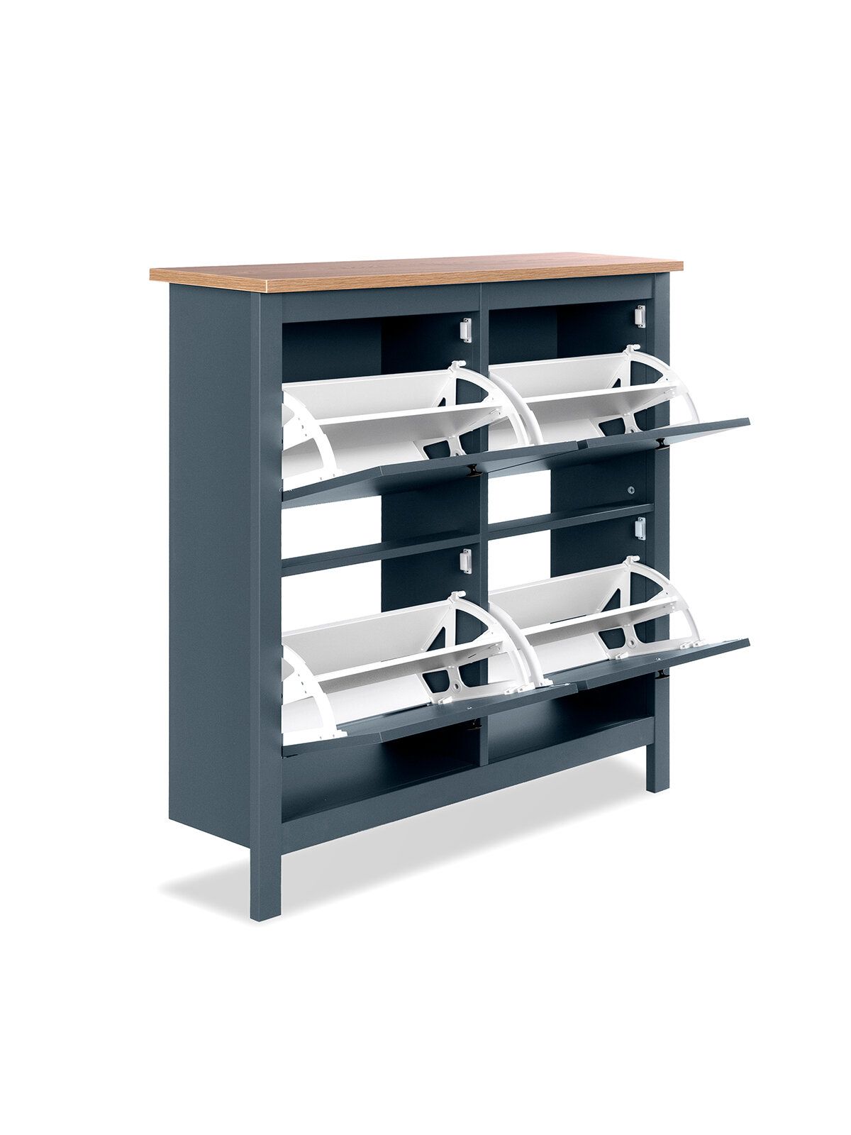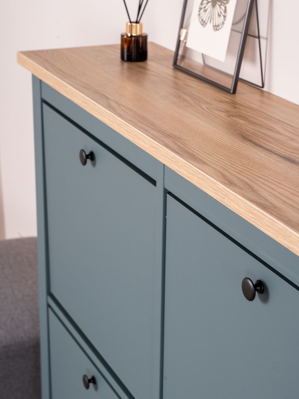 САГА тумба для обуви 113х108 — элегантность и качество в каждой детали! Серия САГА вдохновлена популярной серией HEMNES от IKEA, и станет идеальным дополнением вашей квартиры. Почему выбирают САГА тумба для обуви 113х108? Тумба для обуви САГА — это стильное и функциональное решение для хранения, которое идеально впишется в любой интерьер, будь то прихожая, гардеробная или даже балкон. Ее продуманный дизайн и удобные особенности делают ее незаменимым помощником в организации порядка. Главная особенность тумбы — четыре откидывающихся полки, на которых можно с комфортом разместить до двенадцати пар обуви. Это позволяет легко доставать и убирать обувь, сохраняя ее в идеальном состоянии. Тумба оснащена надежным магнитными фиксаторами, которые обеспечивают безопасность и предотвращает случайное падение полки. Вы можете быть уверены, что обувь останется на своем месте. Не верхнюю полку можно поставить декор или кинуть связку ключей, что очень удобно в прихожей. Несколько тумб можно разместить в ряд, создавая стильное и практичное горизонтальное решение для хранения обуви. Это отличный вариант для больших семей или любителей обуви. Тумба отличается компактными размерами, что делает ее идеальной для небольших пространств. При этом она легко вписывается в различные стили интерьера — от современного до классического. Тумба для обуви САГА — это не просто место для хранения, а стильный и функциональный элемент вашего интерьера. Она поможет поддерживать порядок, сэкономит пространство и станет удобным решением для хранения вашей обуви. Дополните свою прихожую или гардеробную этой тумбой и наслаждайтесь идеальной организацией!
