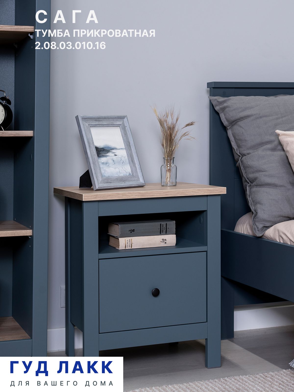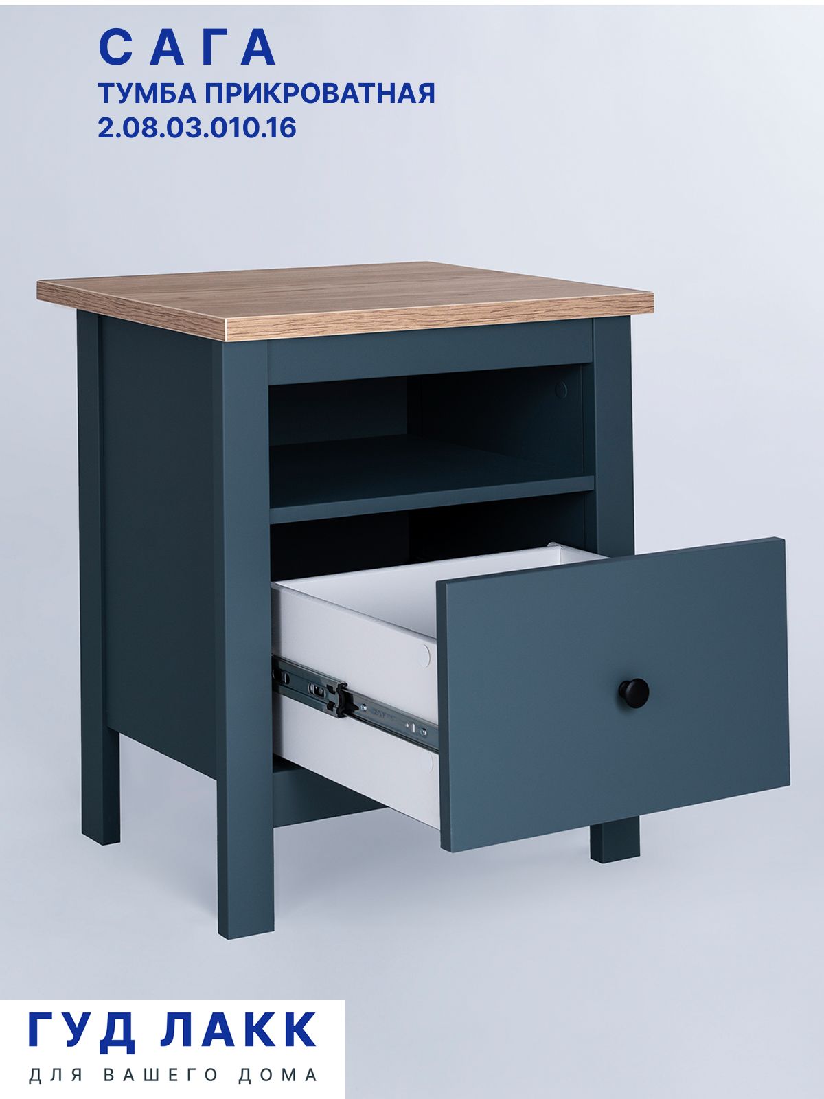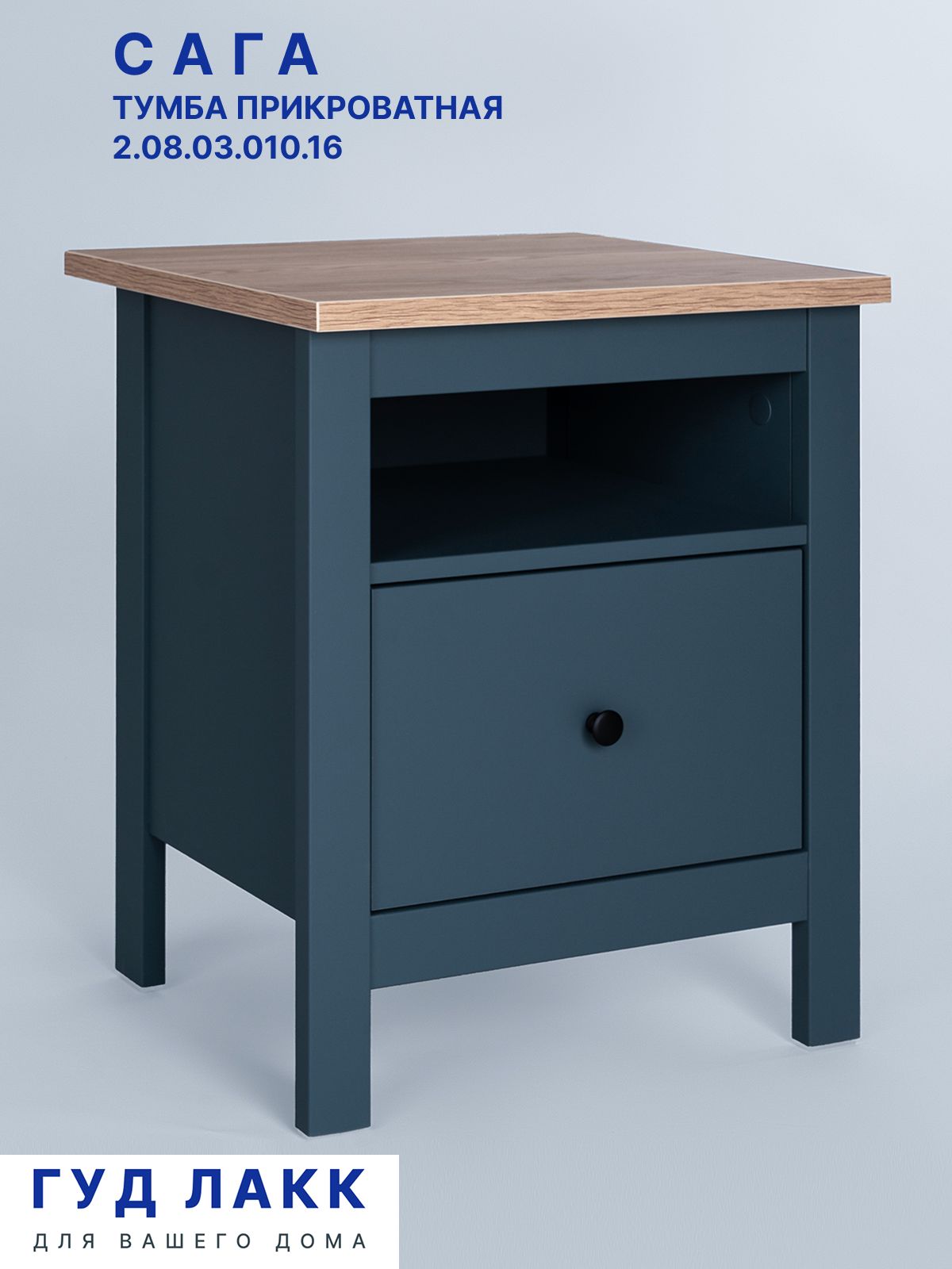 ГУД ЛАКК - знакомая мебель, которую легко купить и собрать! Коллекция разработана для поклонников загородной жизни. Особенностью дизайна мебели Сага является простота форм, с отсылкой к «примитивной» стилистике декоративных элементов и деталей. При этом внешний вид мебели не без оснований внушает чувство надежности и долговечности. Вместо традиционных для мебели данного стиля материалов - массива ели и сосны - мы применили высококачественное ДСП собственного производства класса Е0.5, обладающее повышенной прочностью и стойкостью от растрескивания и деформации. В качестве материала отделки использовали декоры Schattdecor. Укомплектовали мебель премиальной фурнитурой, бесшумными петлями и направляющими с доводчиком.