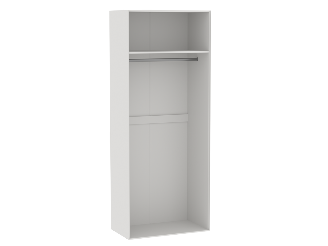 Внутри вы найдёте штанги для одежды и полки для хранения. Благодаря продуманной организации пространства вы сможете легко разместить нужные вещи и поддерживать порядок в спальне.