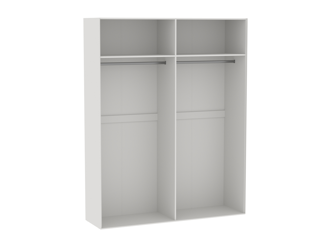 Внутри вы найдёте штанги для одежды и полки для хранения. Благодаря продуманной организации пространства вы сможете легко разместить нужные вещи и поддерживать порядок в спальне.