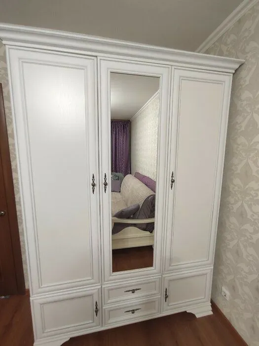 Признанным эталоном качества шкафа с зеркалом Kentaki является использование немецкой и итальянской фурнитуры. Его ящики плавно движутся по металлическим направляющим, а витиеватые ручки под бронзу наиболее отчетливо смотрятся на белом фоне. Шкаф на резных ножках с декоративным карнизом – яркое наследие классики. Такая мебель прекрасно смотрится и в лаконичных скандинавских интерьерах, контрастной неоклассике и современных направлениях типа модерн и минимализм.