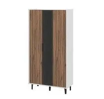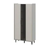 Шкаф трёх дверный, с двумя распашными дверьми на системе push-to-open, и одной дверью витриной в алюминиевом профиле 20х20мм в цвете: чёрный брашированный, стекло с тёмной тонировкой полки стеклянные с тёмной тонировкой, толщиной 6мм петли плавного закрывания