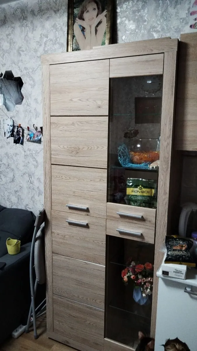 Шкаф качественный, фурнитура тоже. Упакован был отлично, стеклянные полки и дверцы не повреждены. Внешне очень красивый, цвет нейтральный. Очень довольна покупкой .. Продавца рекомендую!