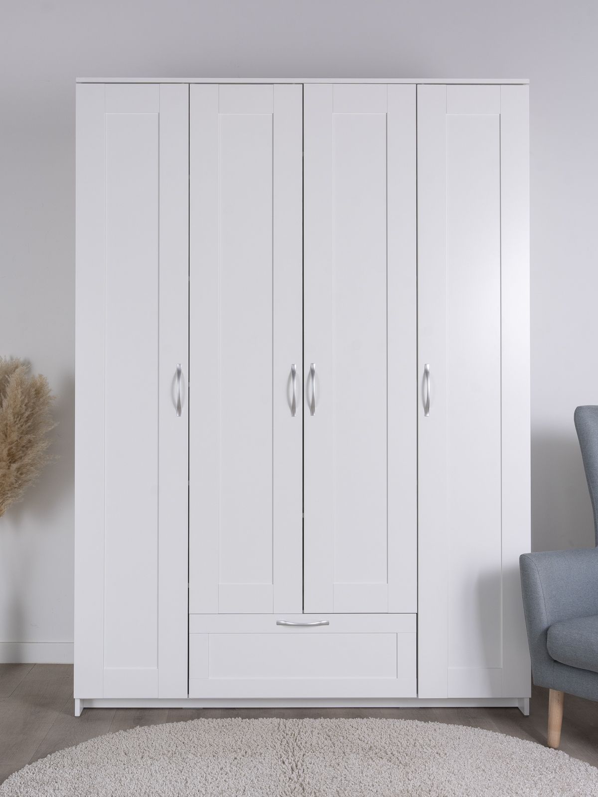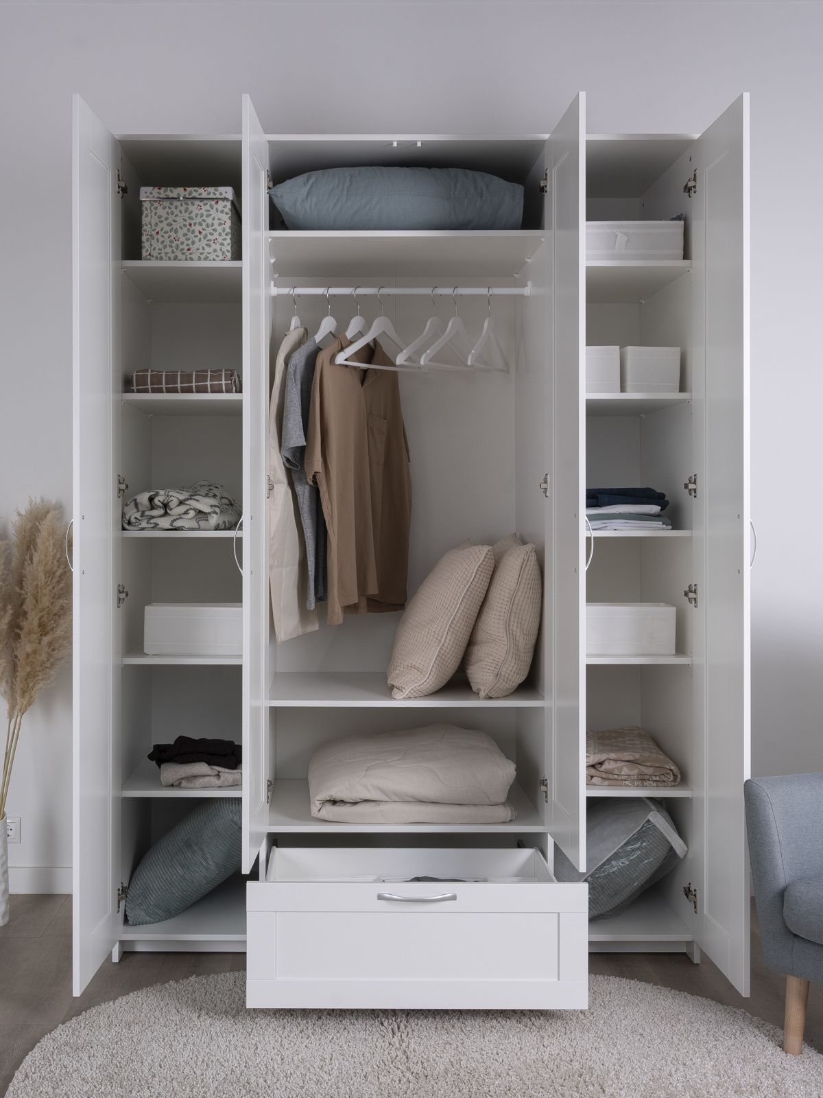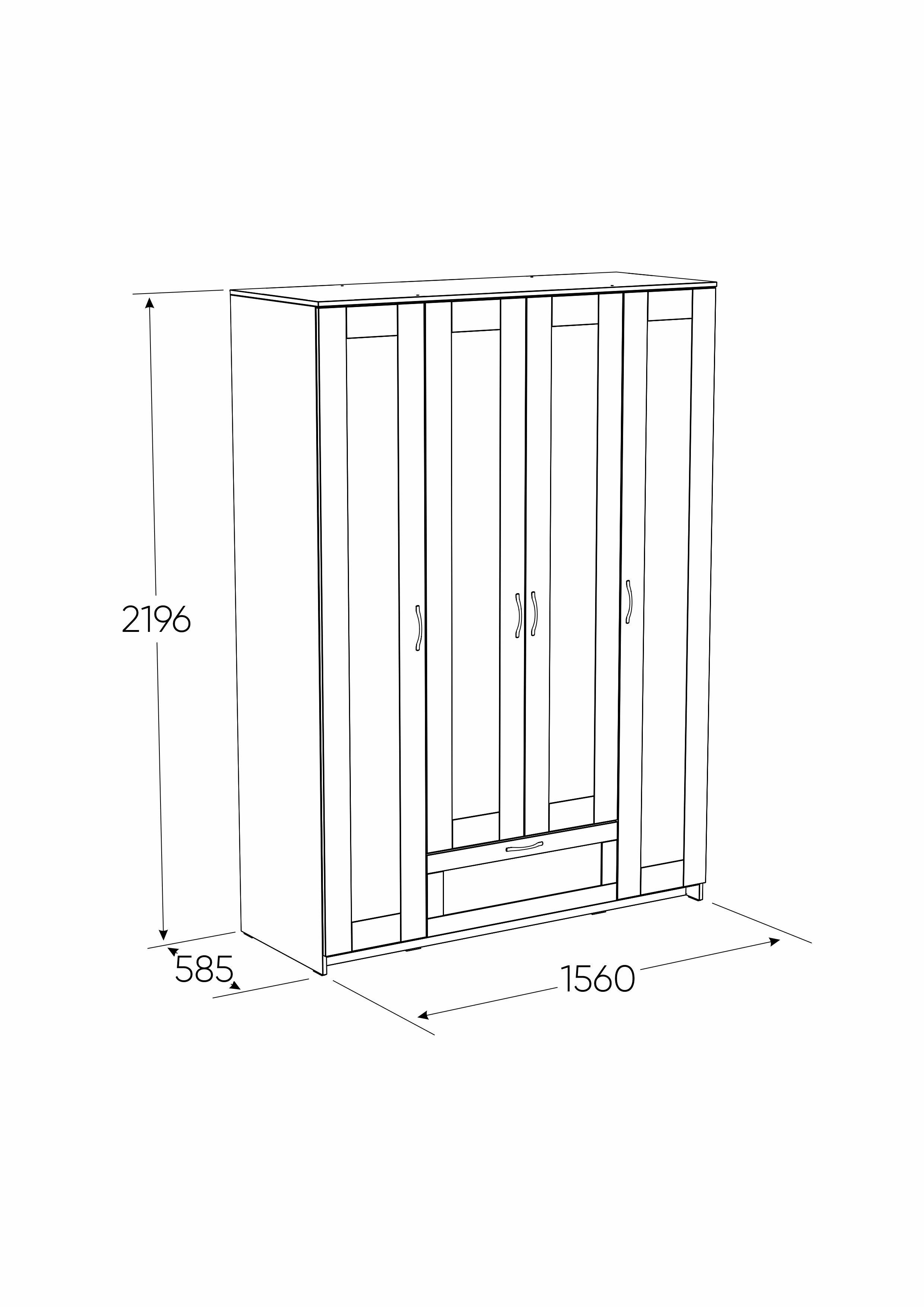 ГУД ЛАКК - знакомая мебель, которую легко купить и собрать! Шкаф ГУД ЛАКК СИРИУС, 4 двери и 1 ящик, 220x156x59 см — элегантность и качество в каждой детали! Серия мебели СИРИУС вдохновлена популярной серией BRIMNES от IKEA, и станет идеальным дополнением вашей квартиры. Почему выбирают Шкаф ГУД ЛАКК СИРИУС, 4 двери и 1 ящик, 220x156x59 см? Этот шкаф СИРИУС с увеличенной высотой — 220 см, для максимального использования пространства! Внутри шкафа расположена прочная платяная штанга, на которой можно разместить одежду на плечиках, сохраняя ее в идеальном состоянии. Просторное внутреннее пространство с тремя дверцами позволяет организовать хранение одежды, обуви, аксессуаров или других вещей. Внешний выдвижной ящик с удобной ручкой предназначен для хранения мелких вещей, аксессуаров или белья. Его можно использовать, не открывая дверцы шкафа, что делает доступ к вещам быстрым и удобным. Так же внутри есть 12 полок, которые можно отрегулировать по высоте для разных вещей. Шкаф имеет оптимальные размеры, что делает его подходящим для небольших помещений, таких как спальни, прихожие, гостевые комнаты или даже гардеробные. Он не занимает много места, при этом остается вместительным. Шкаф СИРИУС — это идеальное сочетание стиля, функциональности и доступности. Он станет надежным помощником в организации хранения, создании уютной атмосферы и поддержании порядка в вашем доме. Благодаря своему универсальному дизайну и продуманной конструкции, этот шкаф будет радовать вас долгие годы!