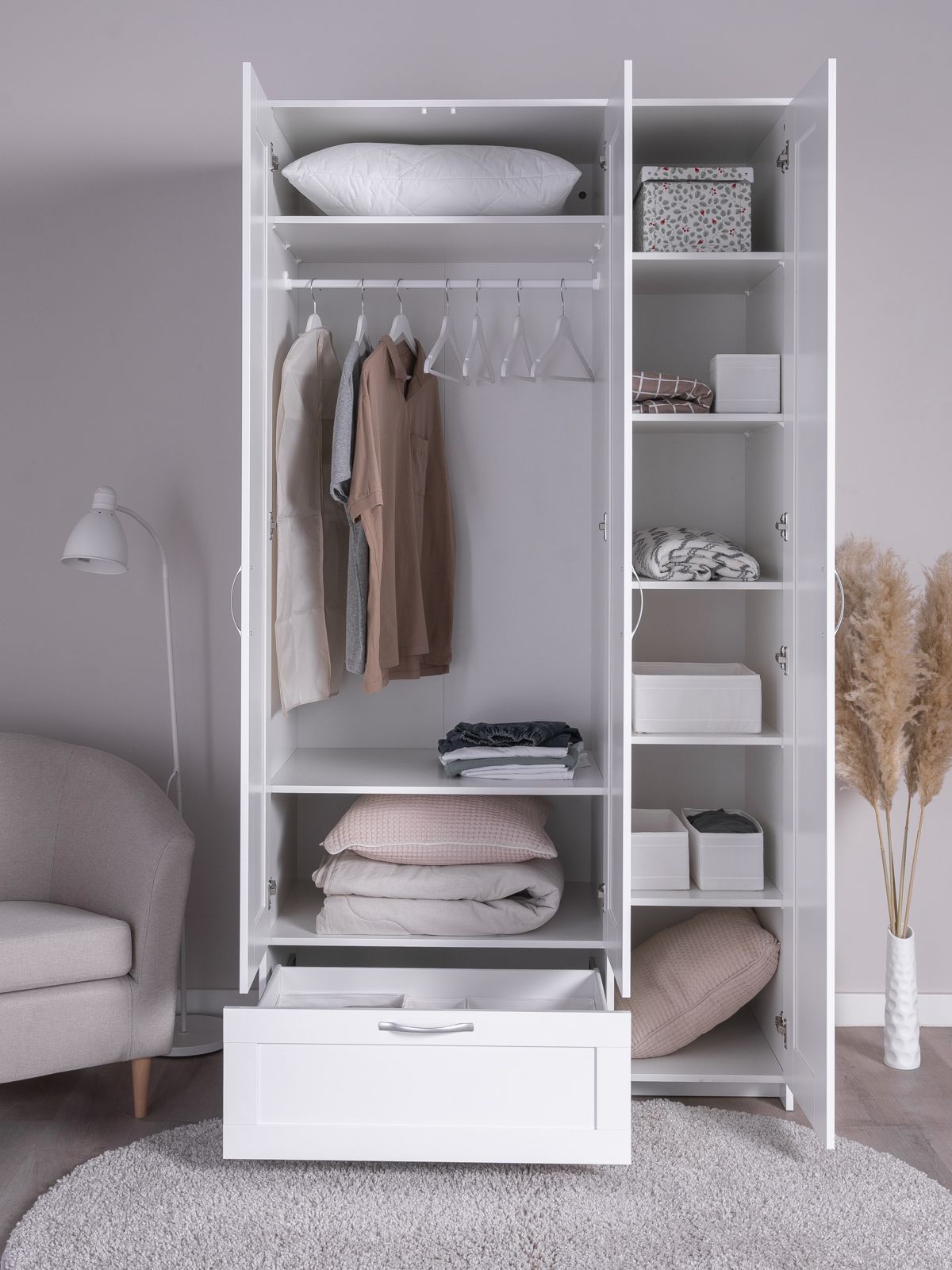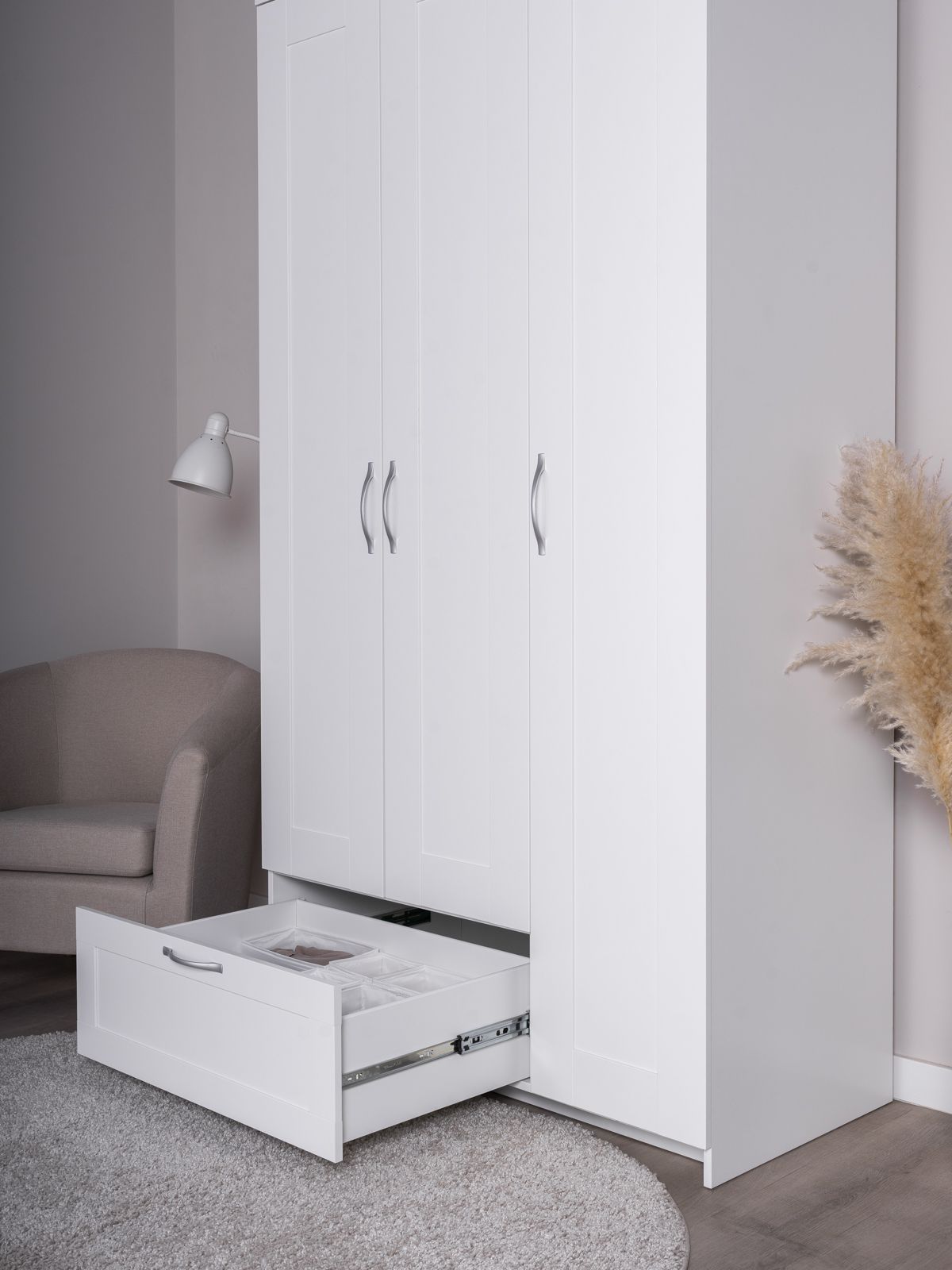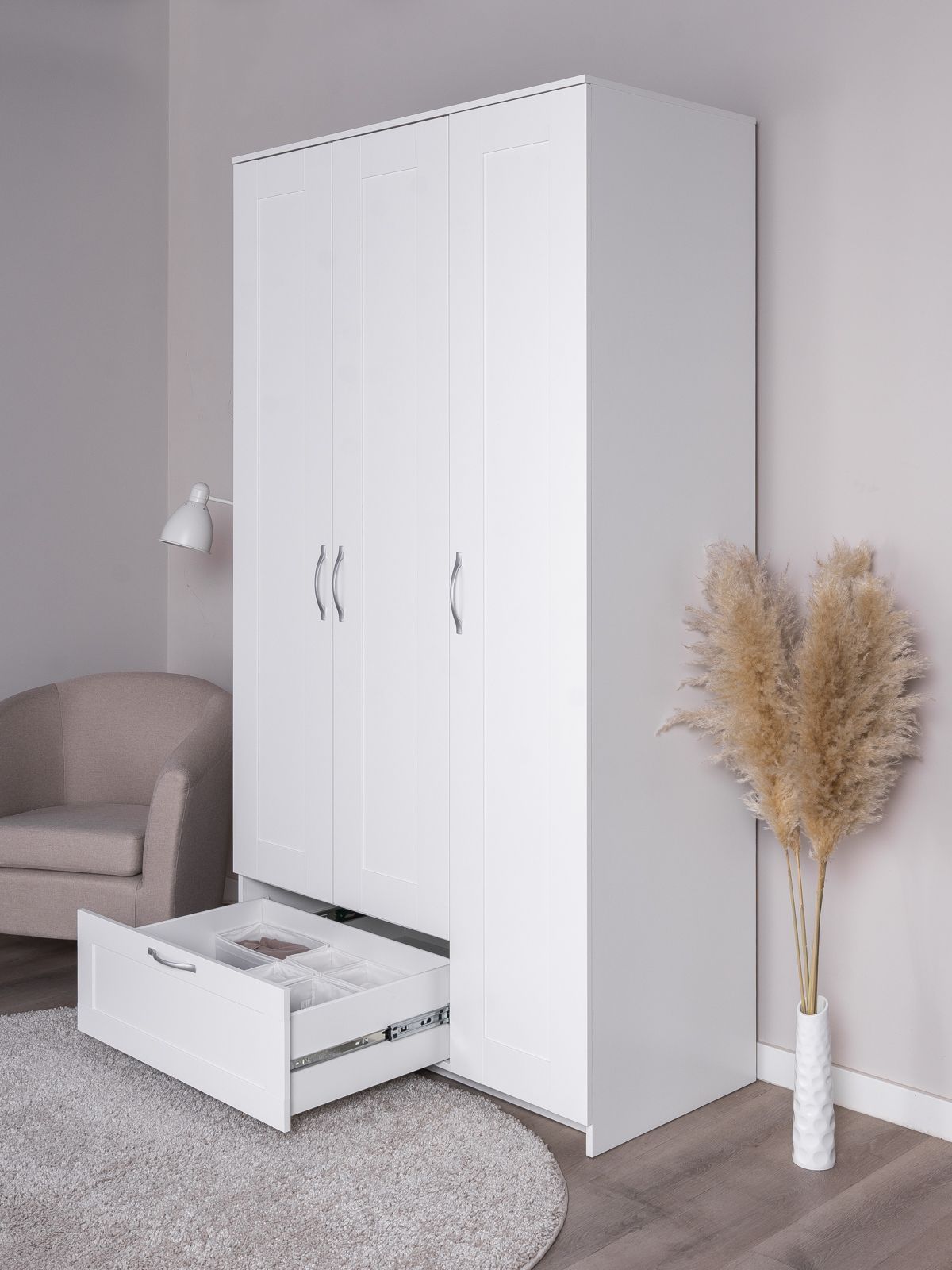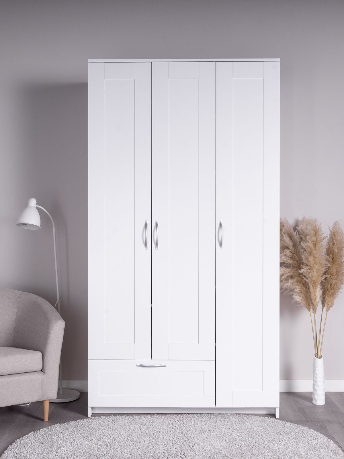 ГУД ЛАКК - знакомая мебель, которую легко купить и собрать! Шкаф ГУД ЛАКК СИРИУС, 3 двери и 1 ящик, 220x117x59 см, с зеркалом — элегантность и качество в каждой детали! Серия мебели СИРИУС вдохновлена популярной серией BRIMNES от IKEA, и станет идеальным дополнением вашей квартиры. Шкаф ГУД ЛАКК СИРИУС, 3 двери и 1 ящик, 220x117x59 см? Этот шкаф СИРИУС с увеличенной высотой — 220 см, для максимального использования пространства! Внутри шкафа расположена прочная платяная штанга, на которой можно разместить одежду на плечиках, сохраняя ее в идеальном состоянии. Просторное внутреннее пространство с тремя дверцами позволяет организовать хранение одежды, обуви, аксессуаров или других вещей. Внешний выдвижной ящик с удобной ручкой предназначен для хранения мелких вещей, аксессуаров или белья. Его можно использовать, не открывая дверцы шкафа, что делает доступ к вещам быстрым и удобным. Так же внутри есть 8 полок, которые можно отрегулировать по высоте для разных вещей. Шкаф имеет оптимальные размеры, что делает его подходящим для небольших помещений, таких как спальни, прихожие, гостевые комнаты или даже гардеробные. Он не занимает много места, при этом остается вместительным. Шкаф СИРИУС — это идеальное сочетание стиля, функциональности и доступности. Он станет надежным помощником в организации хранения, создании уютной атмосферы и поддержании порядка в вашем доме. Благодаря своему универсальному дизайну и продуманной конструкции, этот шкаф будет радовать вас долгие годы!
