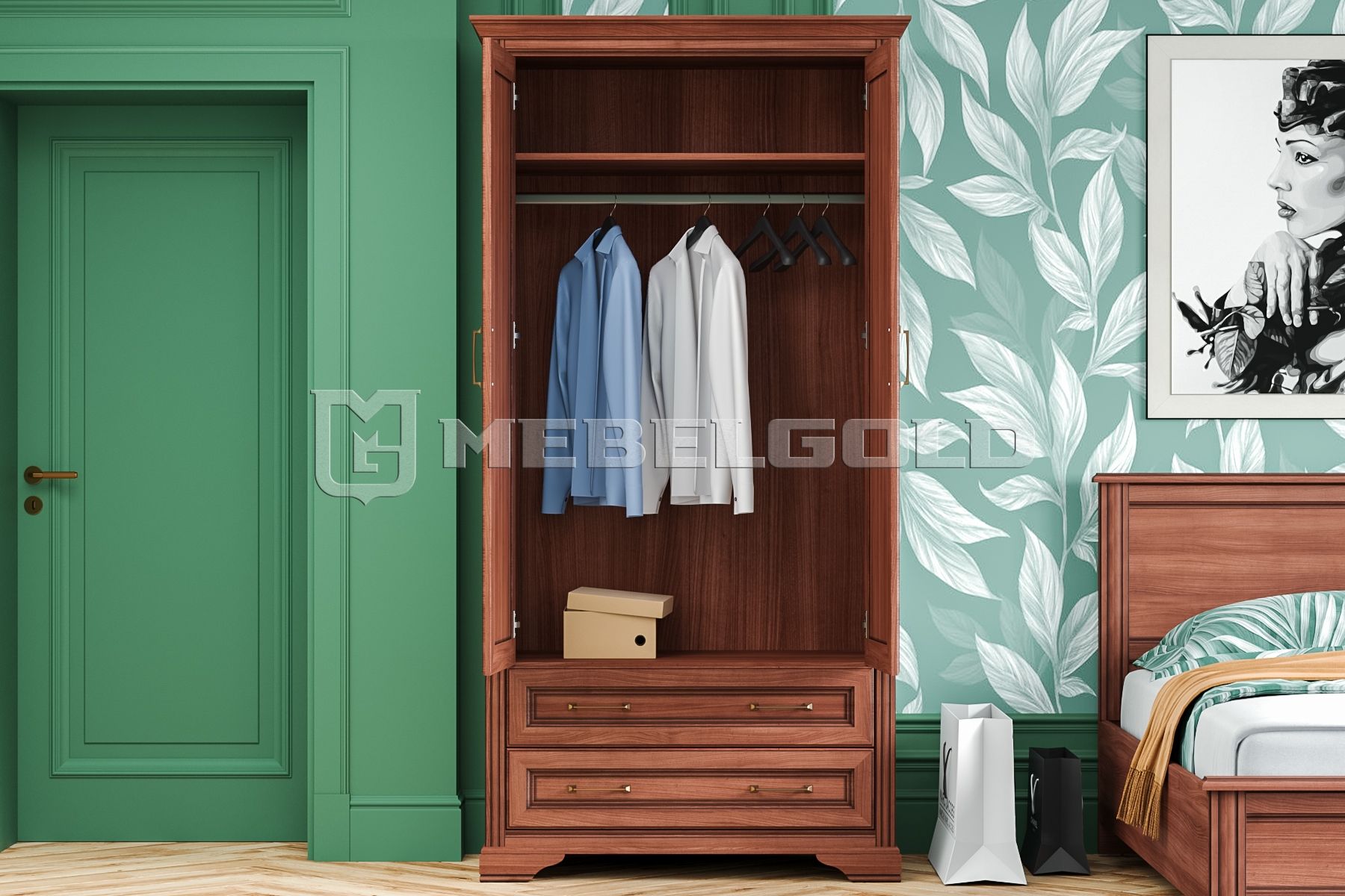 С платяным шкафом Stylius ваши вещи будут в полном порядке! В нем есть все для комфортного хранения любых видов одежды. Полка и штанга, две распашные дверцы и два ящика просто созданы для того, чтобы вещи не мялись и аккуратно лежали на своих местах. Глухие створки надежно спрячут их от посторонних глаз, не позволят пыли и влаги испортить ткань.